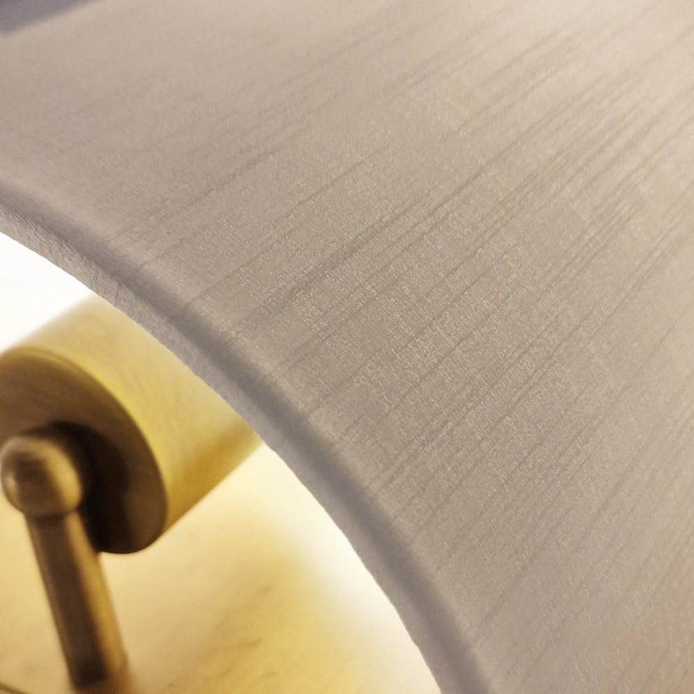 The Curtis wall sconce has a circular design, aged brass finial to complement the ivory faux silk shade that is hand made in the UK.
