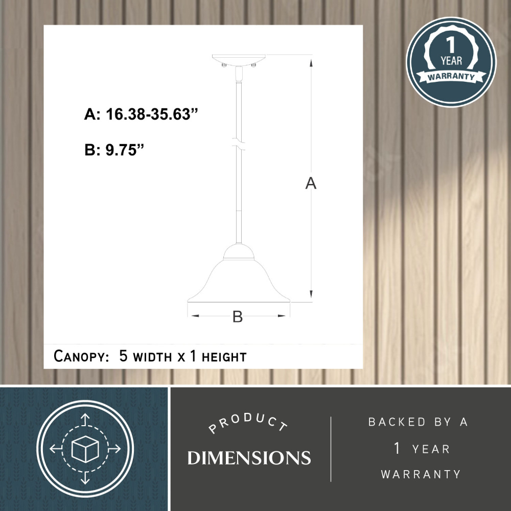 Adjustable height; 16.38-35.63 inches using 3 x 12-in, 1 x 6-in, 1 x 3-in of included down rods; sloped ceiling compatible