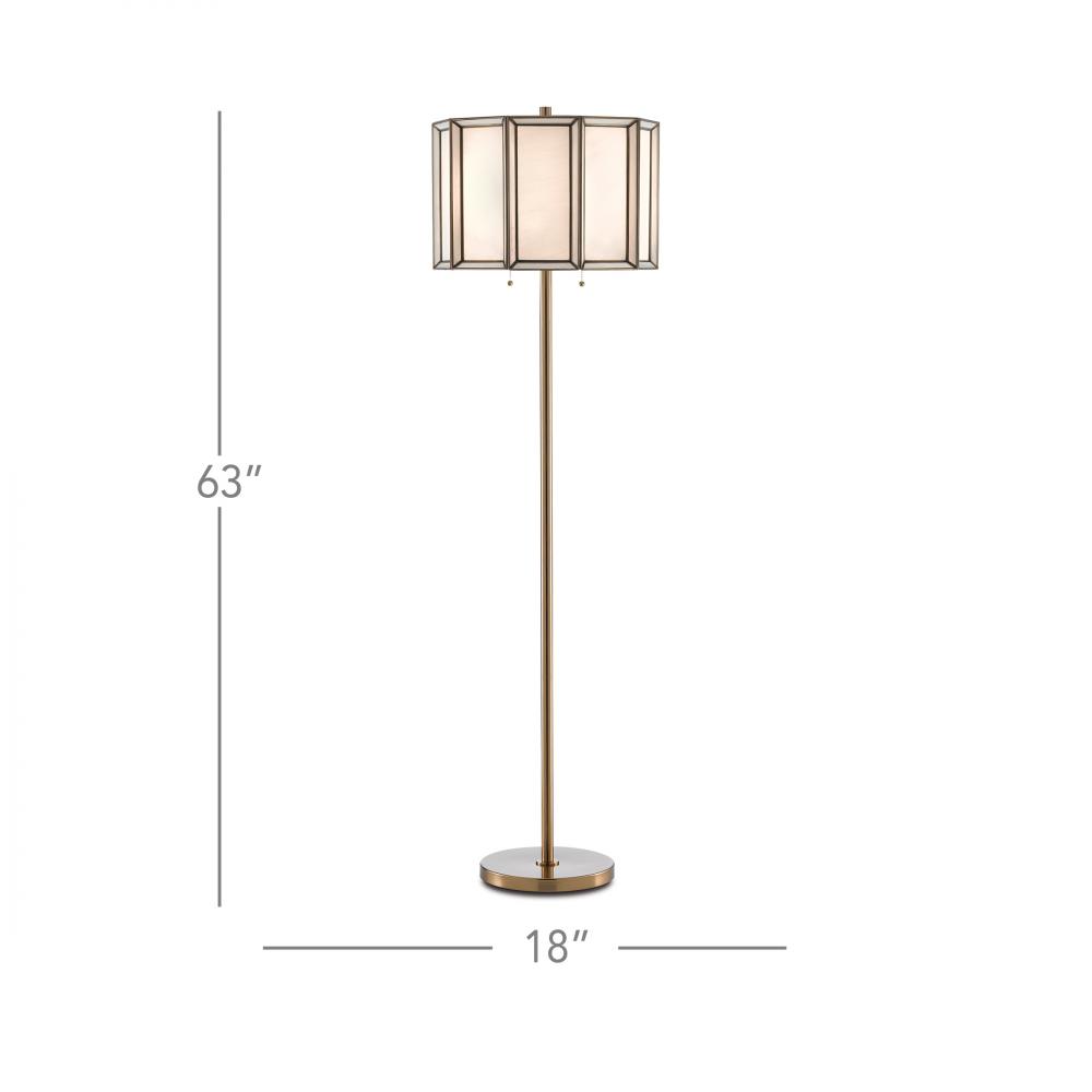 When a soft glow is desired, milk glass is one of the best materials to diffuse illumination. Our Daze Floor Lamp is made of articulated panels of white milk glass that are joined together by ribs of metal in an antique brass finish. This milk-glass floor lamp will turn luminous when it is switched on.
