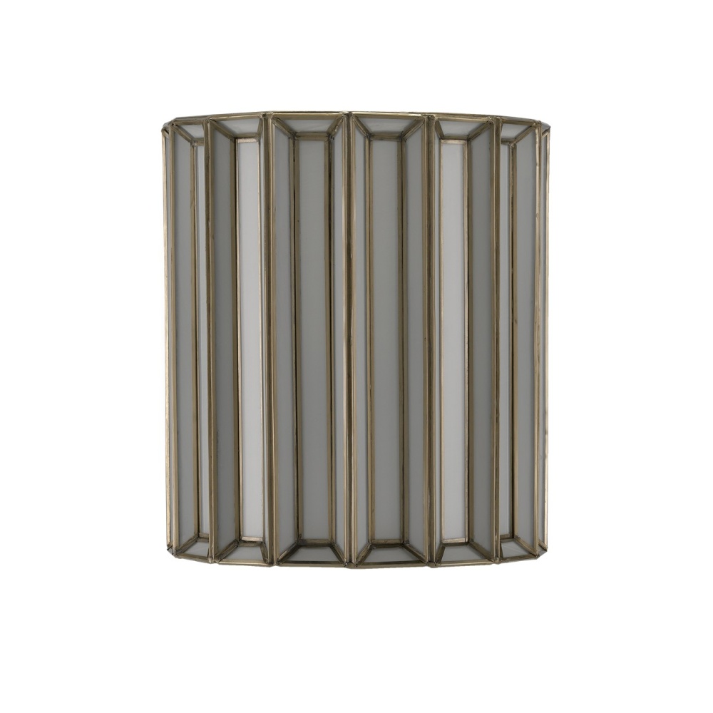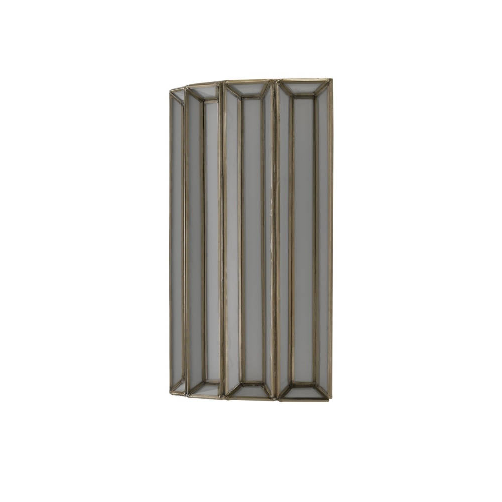 When a soft glow is desired, milk glass is one of the best materials to diffuse illumination. Our Daze Wall Sconce is made of articulated panels of white milk glass that are joined together by ribs of metal in an antique brass finish. This white sconce will turn luminous when it is switched on.