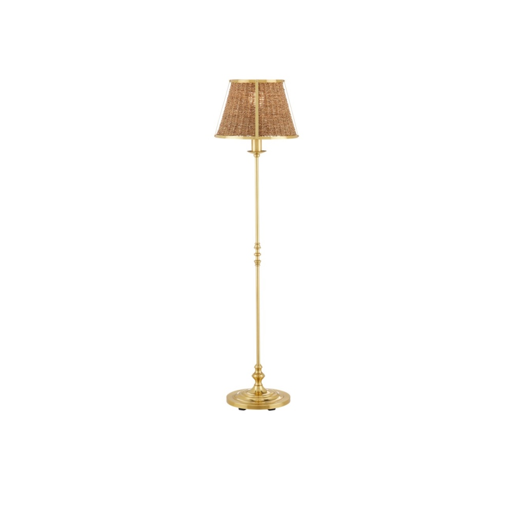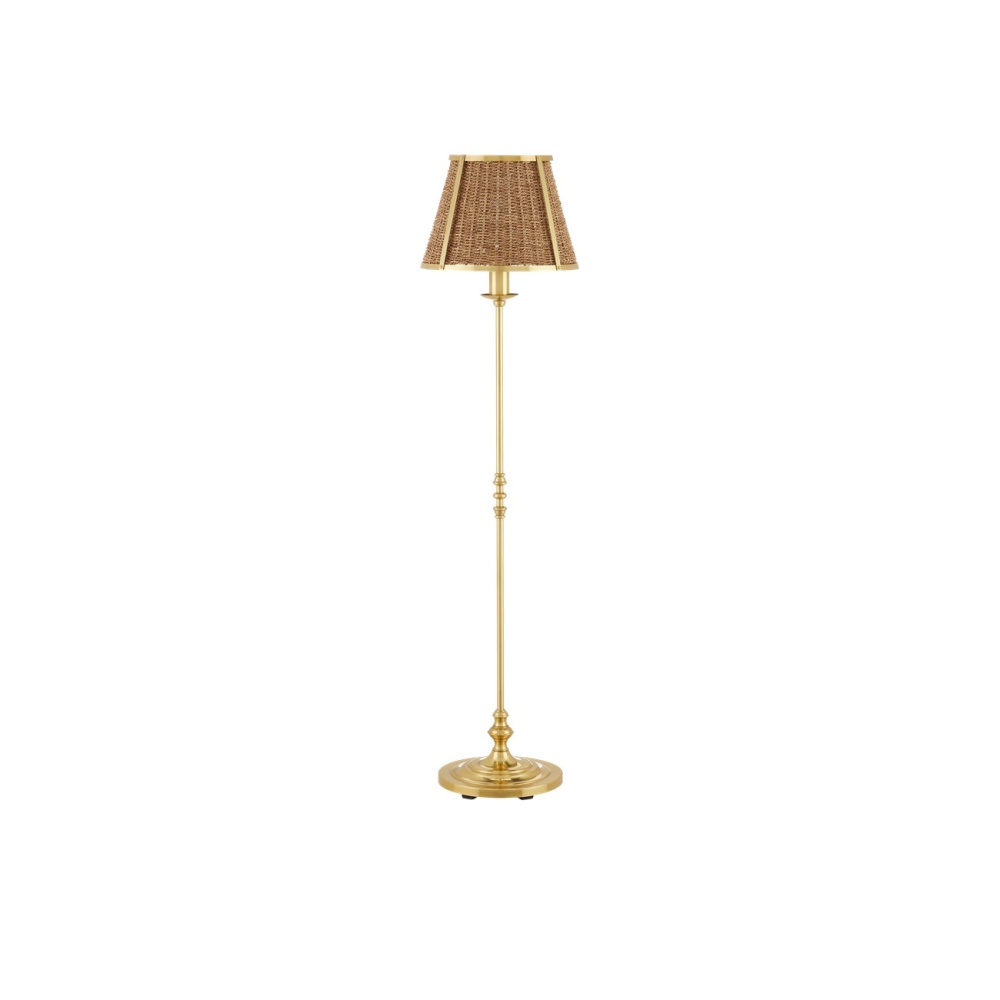 The Deauville Floor Lamp was created by Suzanne Duin, who founded the Houston shop and design studio Maison Maison, and is known for a keen eye in sourcing authentic French antiques and home accessories from around the globe. Each piece in her line of woven light fixtures is handmade by artisans in Southeast Asia; the Deauville an example in natural seagrass and steel in a polished brass finish. This tailored floor lamp trimmed in gold brings both texture and French flair.