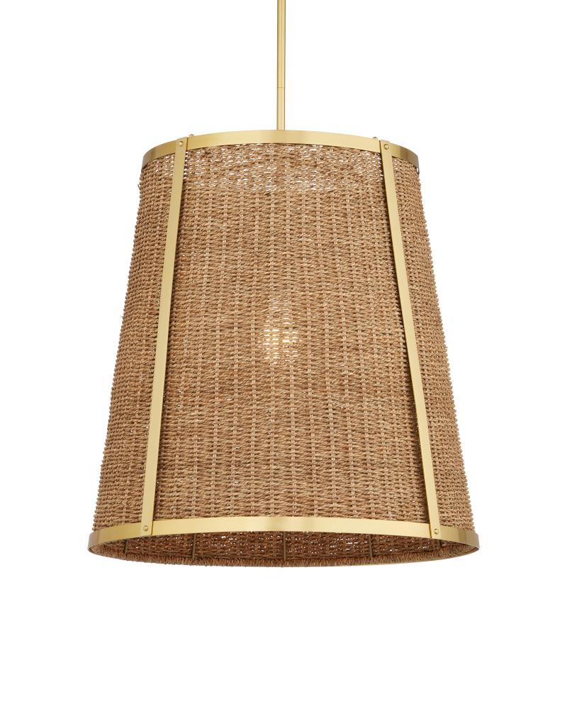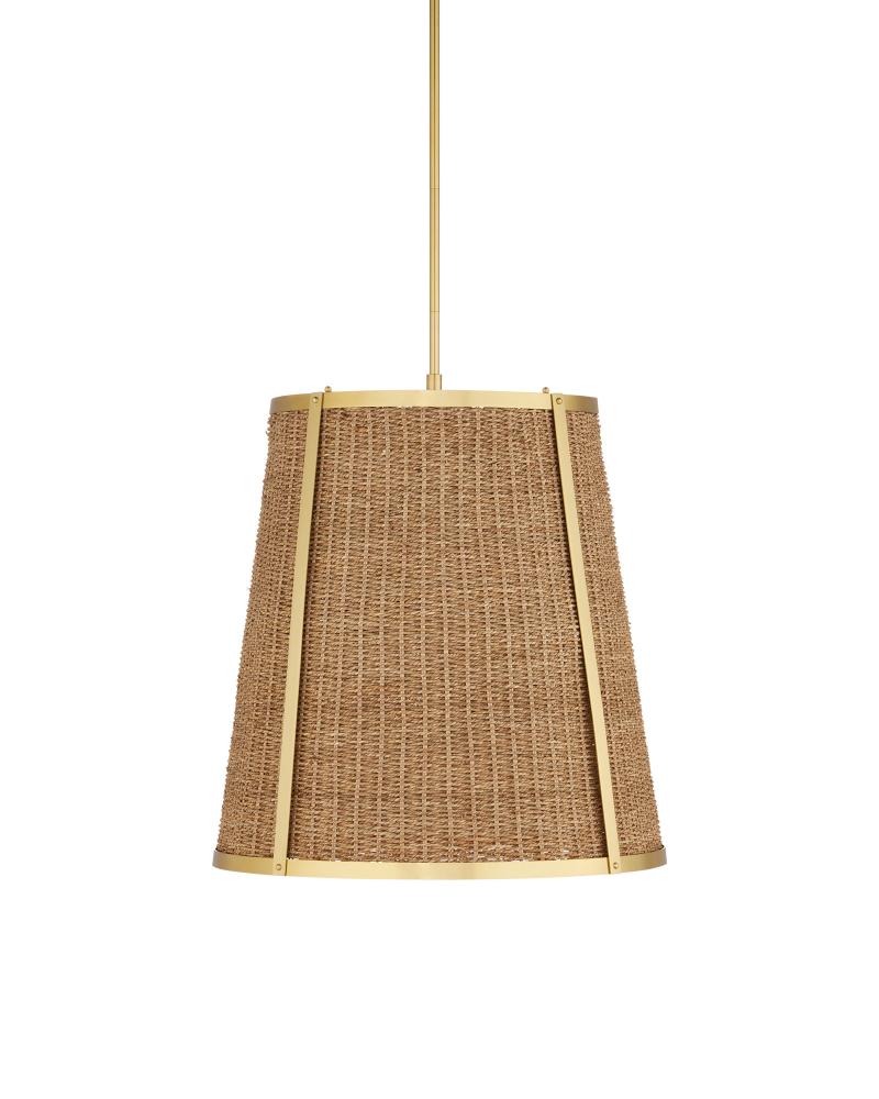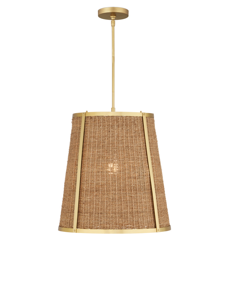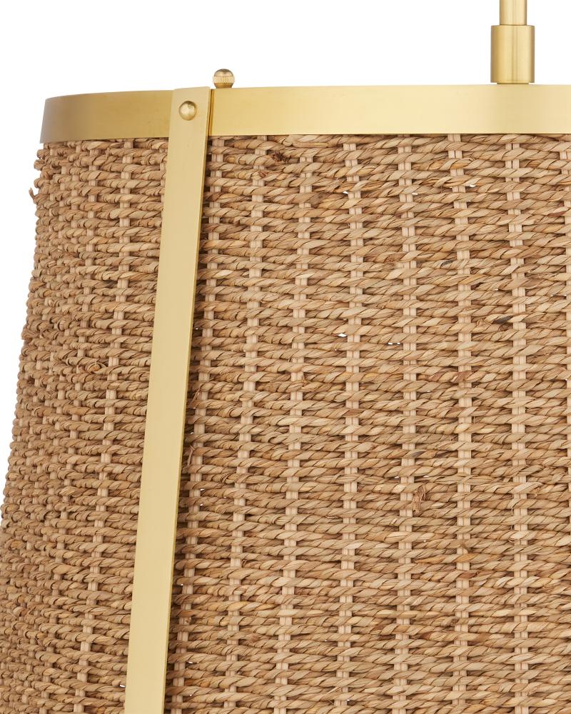 The Deauville Large Pendant was created by Suzanne Duin, who founded the Houston shop and design studio Maison Maison, and is known for a keen eye in sourcing authentic French antiques and home accessories from around the globe. Each piece in her line of woven light fixtures is handmade by artisans in Southeast Asia; the Deauville an example in natural seagrass and steel in a polished brass finish. This tailored pendant trimmed in gold brings both texture and French flair. Adjustable from 30.5" to 72.5" with use of included chain/rod kit/cable. If your space calls for a longer drop, additional chain/rods/cable is available for purchase.