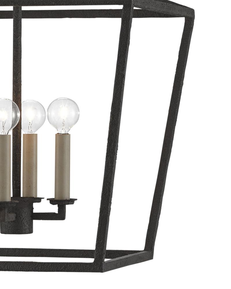 The Denison Black Medium Lantern is a hammered wrought-iron fixture in a Mole black finish. The classic lantern shape has stood the test of time to make it one of our most popular offerings. A design element of note is the square that fastens the lantern to the chain. Adjustable from 28.5" to 94" with use of included chain/rod kit/cable. If your space calls for a longer drop, additional chain/rods/cable is available for purchase.