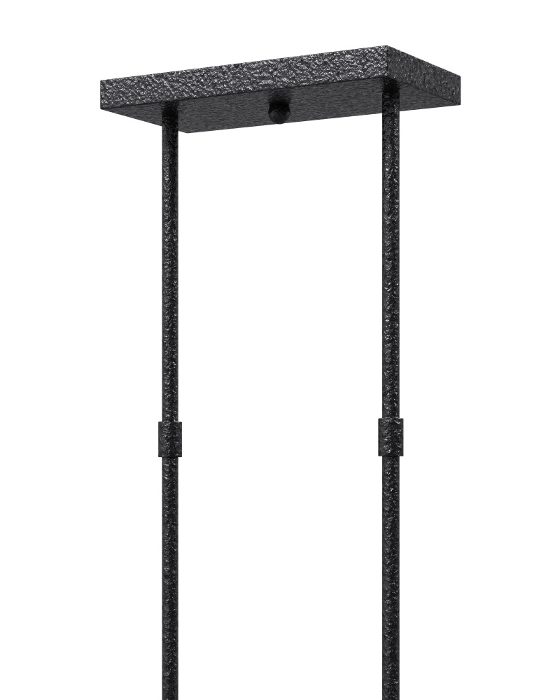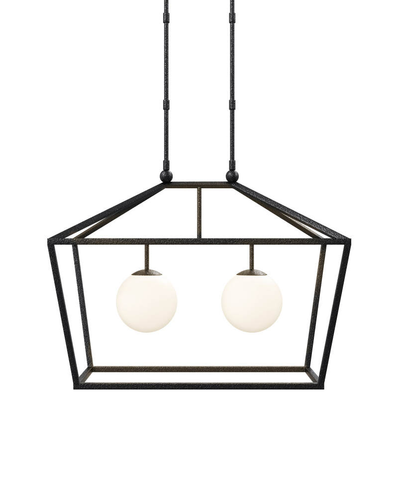 The Denison Rectangular Black Outdoor Lantern has a wrought-iron frame in a black powder-coated finish. This classic lantern shape has two lights surrounded by glass globes to create a soft glow. The black finish adds subtle texture to the surface of the metal and the connecting rods that suspend it are architectural accents. The Denison is wet-location tested so it is ideal for lighting patios and porches, and this rectangular lantern is a terrific choice for hanging above long outdoor dining tables. Adjustable from 31.5" to 73.5" with use of included chain/rod kit/cable. If your space calls for a longer drop, additional chain/rods/cable is available for purchase.