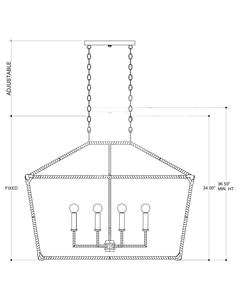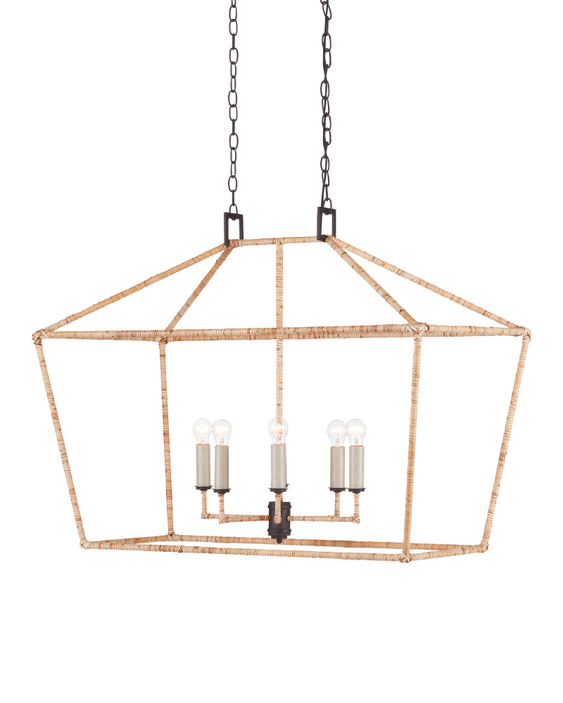 The Denison Rattan Rectangular Lantern is a hammered wrought-iron fixture in a Mole black finish that is wrapped in rattan. The classic lantern shape has stood the test of time to make it one of our most popular offerings. A design element of note is the square that fastens the lantern to the chain. Adjustable from 36" to 107" with use of included chain/rod kit/cable. If your space calls for a longer drop, additional chain/rods/cable is available for purchase.