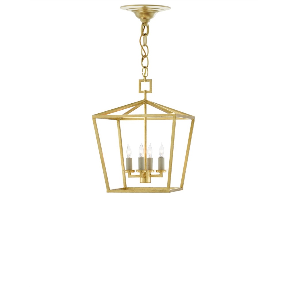 The Denison Gold Small Lantern is a hammered wrought-iron fixture in a contemporary gold leaf finish. The classic lantern shape has stood the test of time to make it one of our most popular offerings. A design element of note is the square that fastens the lantern to the chain. Adjustable from 20.5" to 92.5" with use of included chain/rod kit/cable. If your space calls for a longer drop, additional chain/rods/cable is available for purchase.