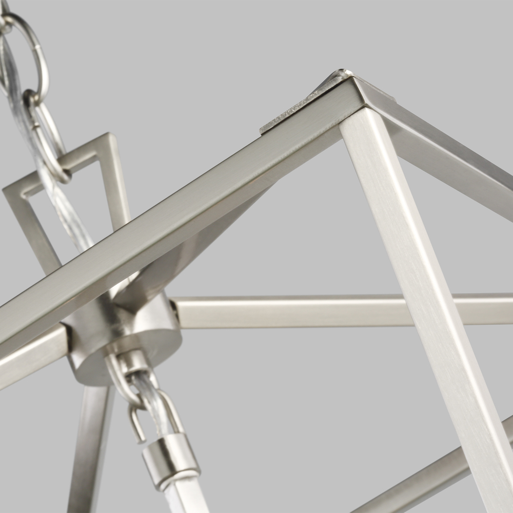 The Dianna four light indoor pendant in brushed nickel supplies ample lighting for your daily needs, while adding a layer of today's style to your home's décor. The open, airy iron frame of this three-dimensional lantern brings depth and structure to any space.