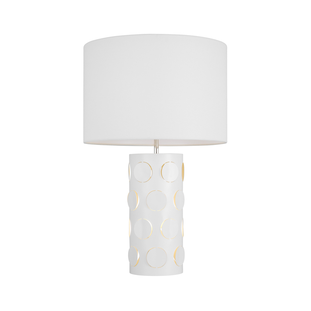 Charm and playful sophistication adorn this table lamp, available in Burnished Brass, Matte White and Polished Nickel.