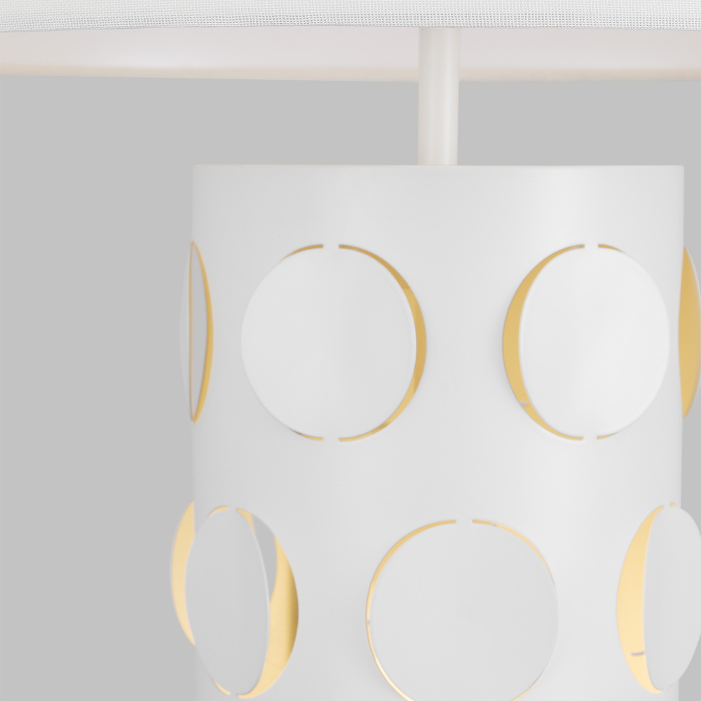 Dots are iconic to the kate spade brand—a simple and playful graphic motif. Dottie takes an iconic kate spade dot motif and cuts it into metal—creating a playful ambient light effect. A classic metal drum shade with an extra twist of perforated pattern. We’ve taken an iconic kate spade dot motif and pierced it into metal to create a base of a cylindrical table lamp. The base is illuminated—creating a playful ambient light effect in addition to the glowing drum shade. Use this fixture in any classic table lamp scenario—on either side of a sofa or bed, or in an office or entry as well.
