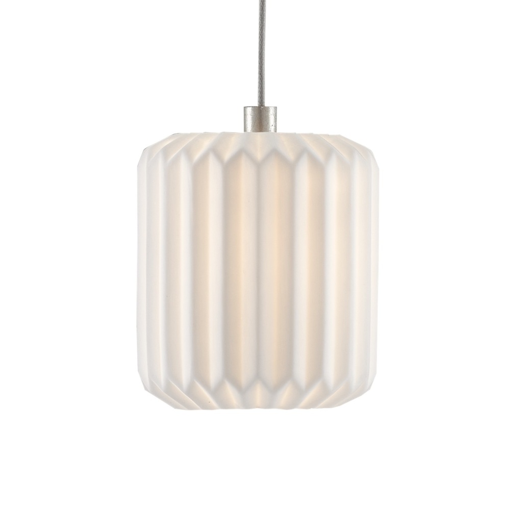 The Dove Rectangular 7-Light Multi-Drop Pendant has pleated shades made of pale ceramic that diffuse the light wafting through them. The indentions and ridges on the shades of the white pendant bring a textural feel to this luminary even though it is monochromatic. The canopy of this piece is luminous in a painted silver finish. This fixture is among Currey & Company's multi-drop pendant collection, which includes multiple configurations.