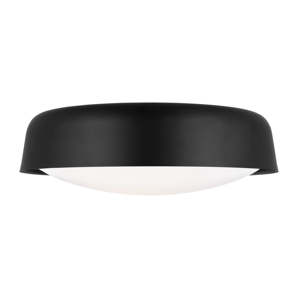 Modern and industrial elements meet in the Draper series, a metal shade that rests atop Milk glass to complete the look