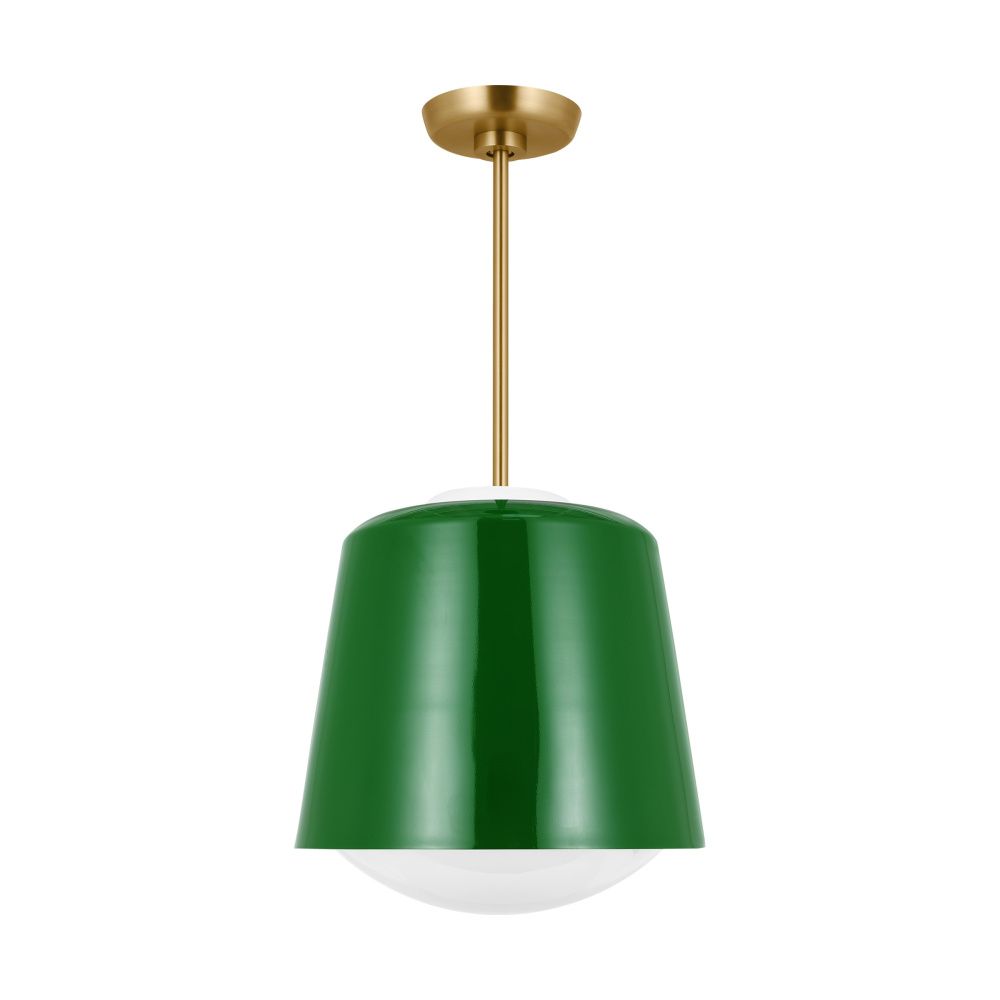 The Draper series by kate spade new york is a modern and sophisticated lighting fixture that adds a touch of elegance to any room. With its sleek metal design and high-quality materials, this series is the perfect blend of style and functionality. The metal shade rests on Milk glass, allowing light to illuminate both up and down.