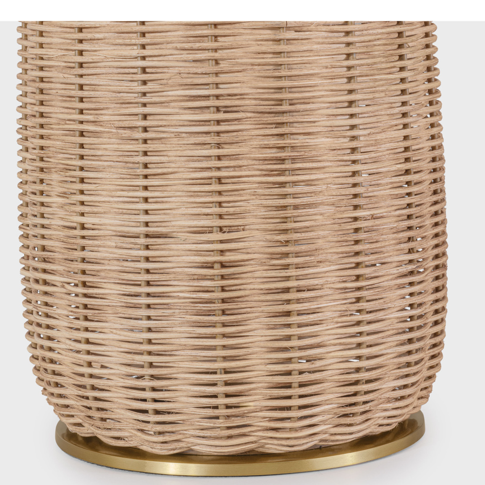 Crafted with in a Blonde Rattan finish with white linen shade