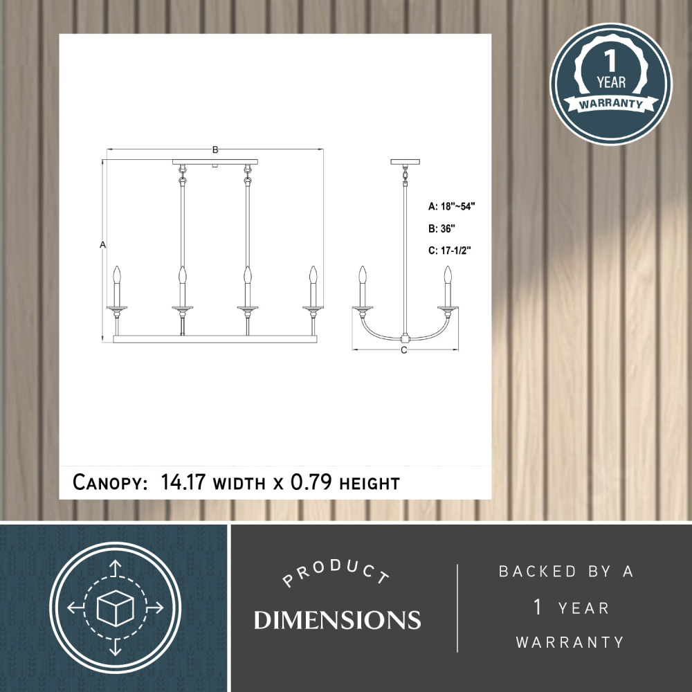 Transform your dining or living space with the Durham 8-light linear chandelier. Its modern matte black finish and open design, featuring exposed bulbs, create a warm and inviting atmosphere. Gracefully arched arms offer a classic silhouette, blending traditional charm with contemporary style. This linear light fixture is perfect for illuminating long dining tables, kitchen islands, or large living areas, providing ample light distribution. The Durham linear chandelier brings refined simplicity and lasting style to your home.
