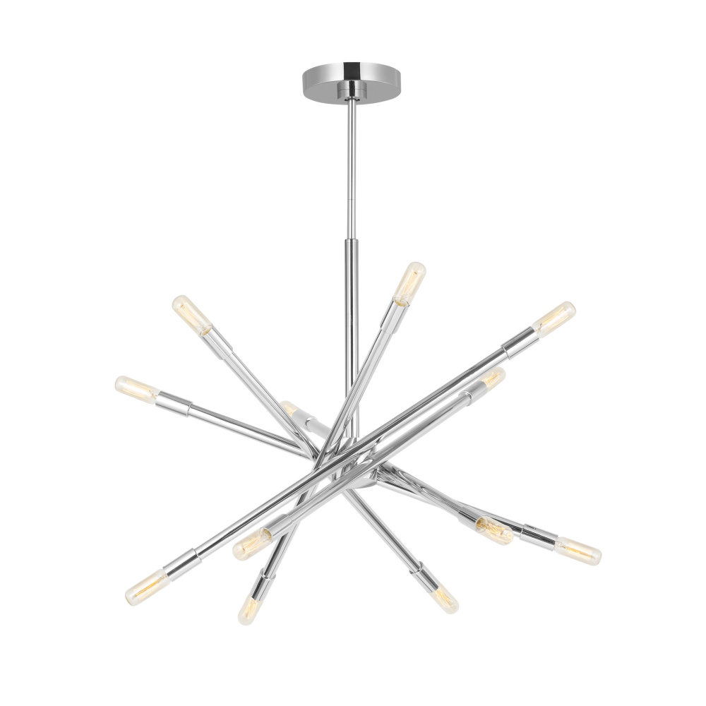 The Eastyn series by Chapman & Myers was inspired by a vintage Italian chandelier design. Each arm is attached to a central hub in the middle and can be adjusted to different angles to create a more vertical or horizontal appearance. Eastyn is perfect for the kitchen island, dining room, cafe, foyer, club, entryway, and hallway. It's mid-century stylish; the geometric design lends elegance to this contemporary sputnik sphere chandelier.