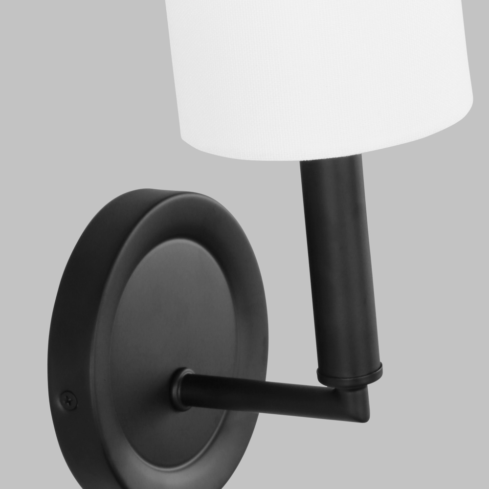 Designed by Drew & Jonathan Scott, Egmont is a classic design with clean lines and white linen shades, perfect for farmhouse or transitional style settings. It's made from metal featuring a wagon wheel body on the chandelier and a circular backplate on the wall sconce. The open framework at the top and bottom assures strong up-light. The overall style and multiple finishes work as well in a modern-farmhouse kitchen as they do in a vintage industrial loft.