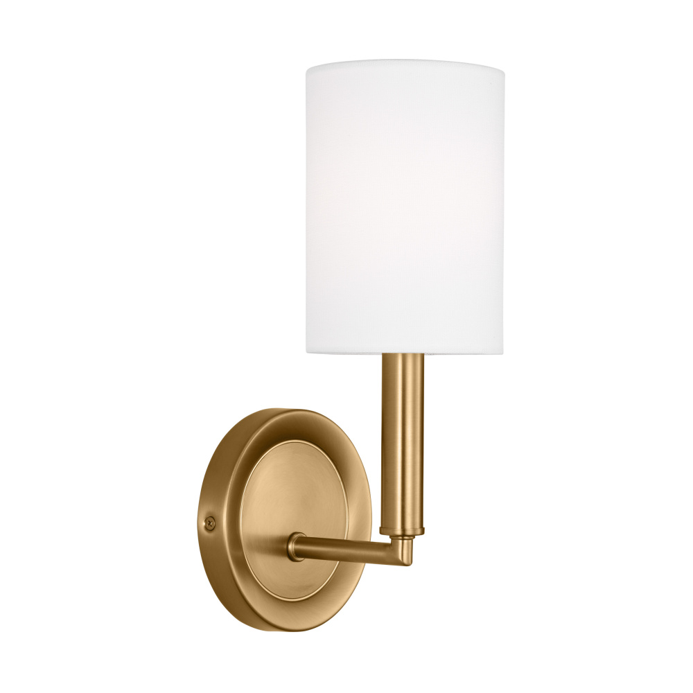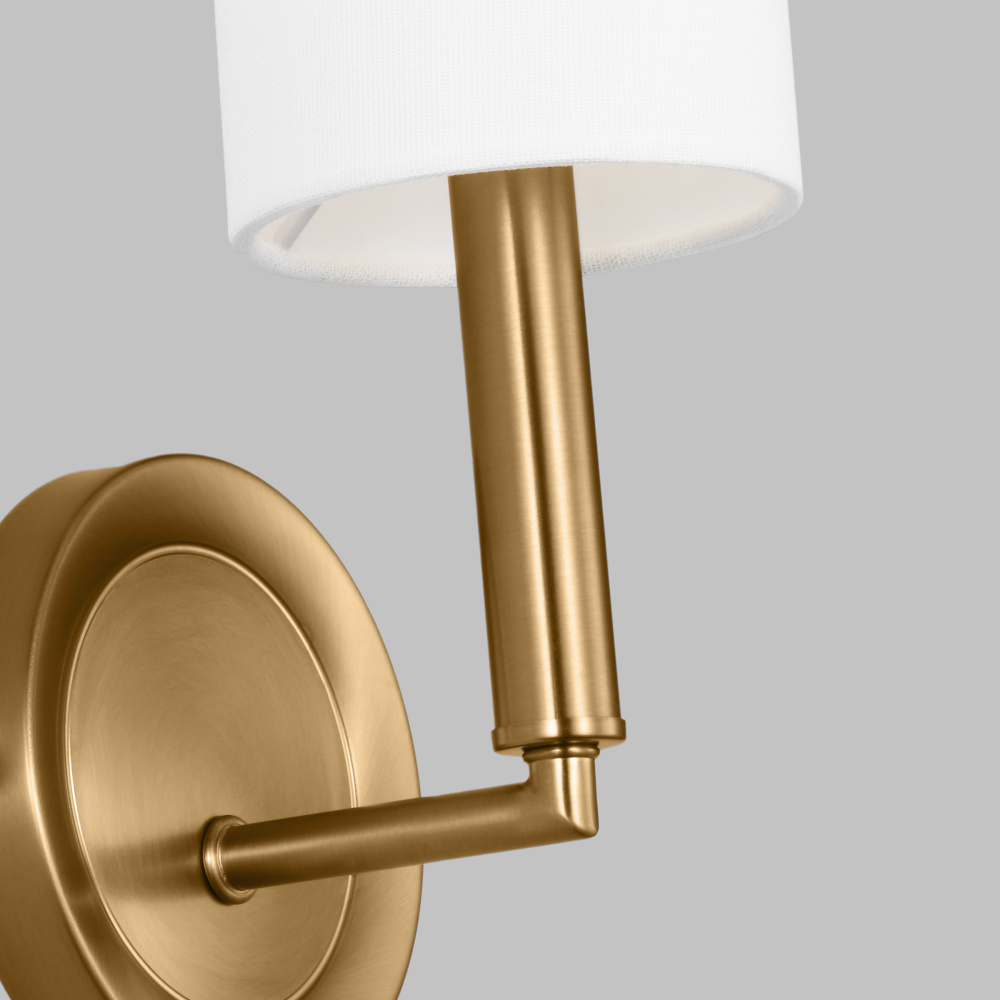 Designed by Drew & Jonathan Scott, Egmont is a classic design with clean lines and white linen shades, perfect for farmhouse or transitional style settings. It's made from metal featuring a wagon wheel body on the chandelier and a circular backplate on the wall sconce. The open framework at the top and bottom assures strong up-light. The overall style and multiple finishes work as well in a modern-farmhouse kitchen as they do in a vintage industrial loft.
