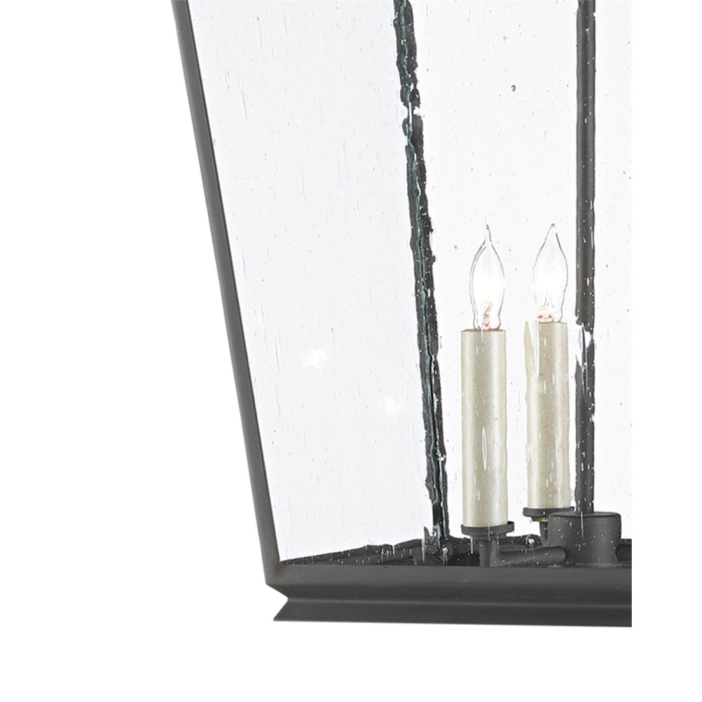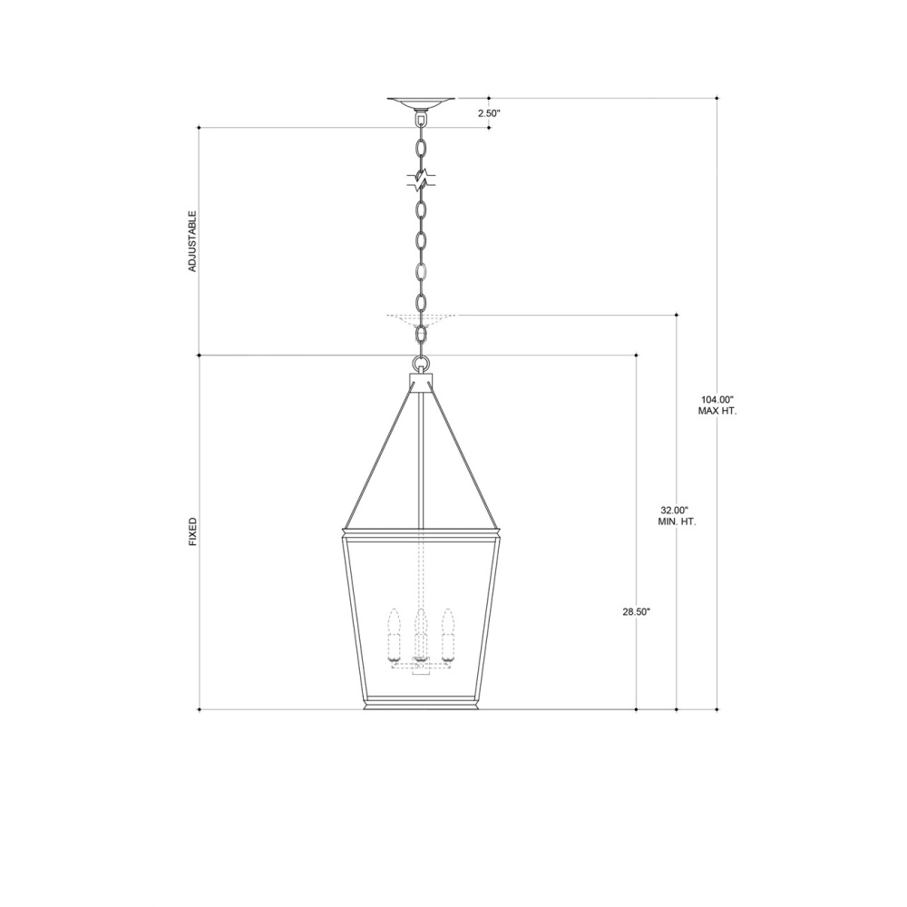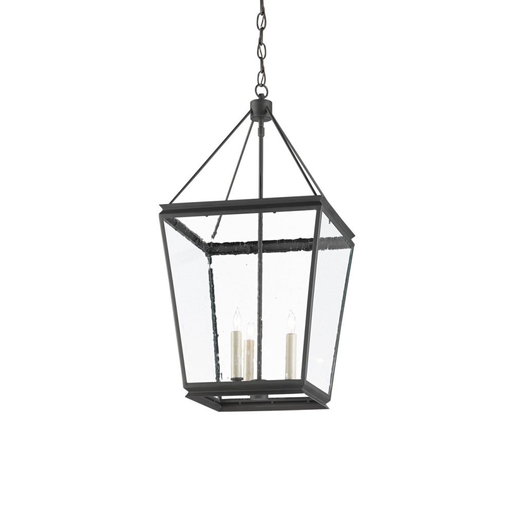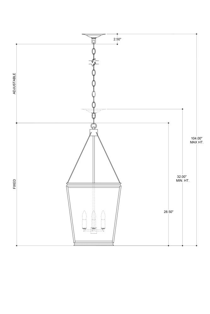 The Ellerman Lantern is a tried-and-true design that reflects the age-old lantern shape, which never goes out of style. Made of wrought iron in an old iron finish, the black lantern is fitted with seeded glass panels to complete the feel that this is a fixture rooted in Americana. Adjustable from 32" to 104" with use of included chain/rod kit/cable. If your space calls for a longer drop, additional chain/rods/cable is available for purchase.
