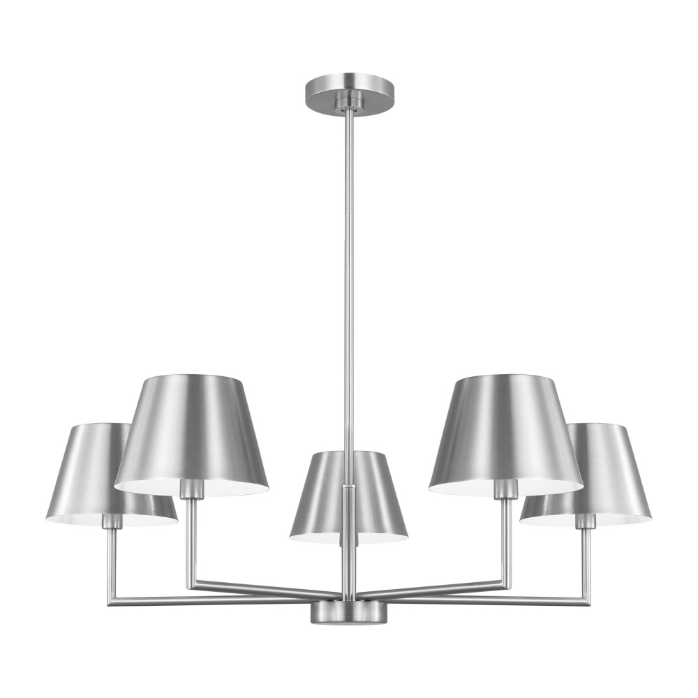 Designed with versatility in mind, the Ender series by Drew & Jonathan offers clean lines that will enhance any interior. The transitional profile is updated with modern metal shades that create a contemporary look. This chandelier will illuminate kitchens and dining rooms.