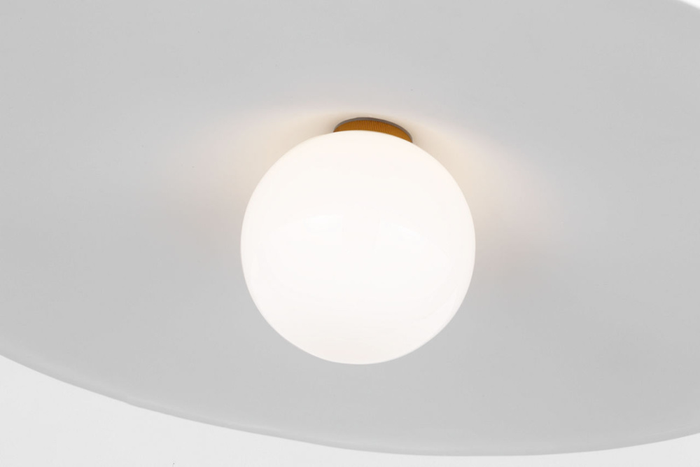 Features a rounded disc of natural plaster, left intentionally raw to showcase its subtle imperfections and handcrafted texture