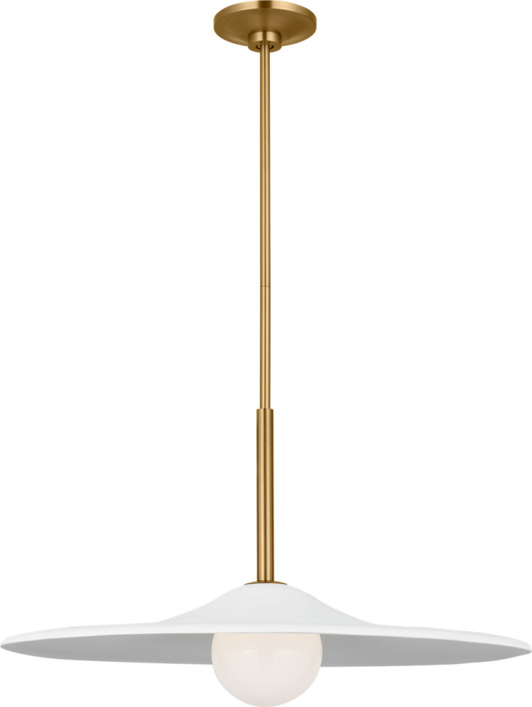 Kate Spade’s Endicott 24" Pendant expands the collection’s architectural language into a more commanding scale. The plaster shade’s curved profile and the glowing milk glass sphere create a sculptural presence that anchors the room With understated drama. Perfect for dining rooms, foyers, living rooms, or bedrooms, this pendant offers a bold yet balanced expression of the Endicott Collection—where softened geometry and elevated simplicity converge.