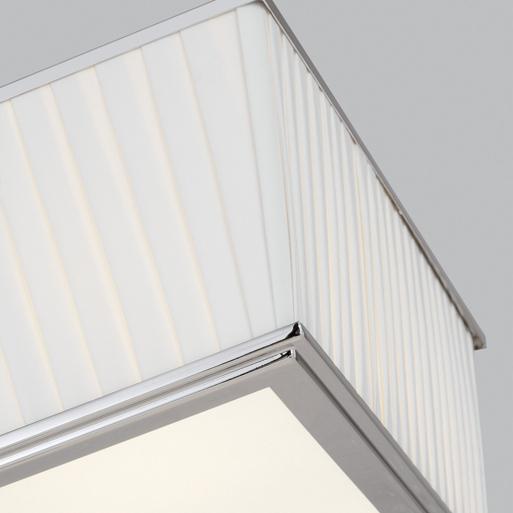 The Esther four light flush mount by Lauren Ralph Lauren is a transitional interpretation of a classic design. Esther has pleated shades that bring the visual interest to the collection, while a decorative yolk holds the shade to frame. Three different sconce silhouettes are included in the Ester series. Available in a Time Worn Brass or Polished Nickel finish.