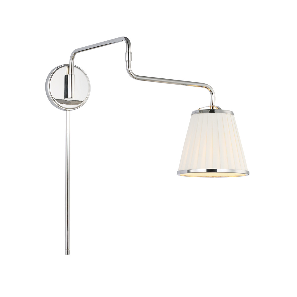 The Esther one light swing arm lamp by Lauren Ralph Lauren is a transitional interpretation of a classic design. Esther has pleated shades that bring the visual interest to the collection, while a decorative yolk holds the shade to frame. Three different sconce silhouettes are included in the Ester series. Available in a Time Worn Brass or Polished Nickel finish.