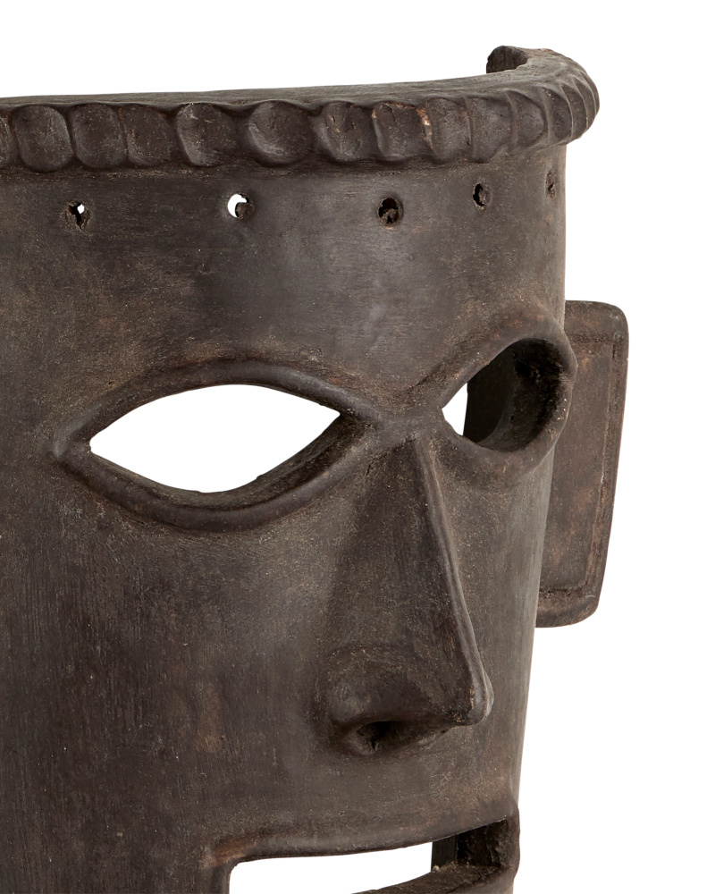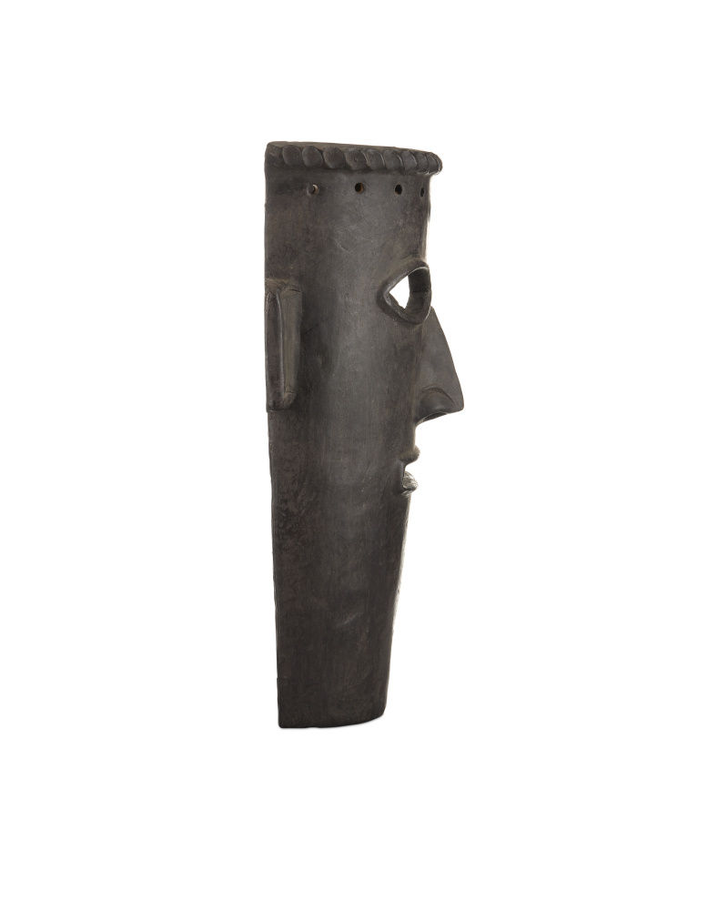 Made of clay, the Etu Black Mask Set includes two black masks that are medieval in their attitudes. The finish is rubbed onto the black sculptures so the clay shows through in spots to enhance the feel that these are aged artifacts. These are among our artisanal pieces that will be conversation starters in the spaces they will ornament.