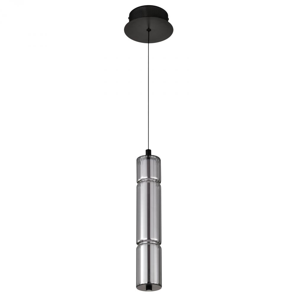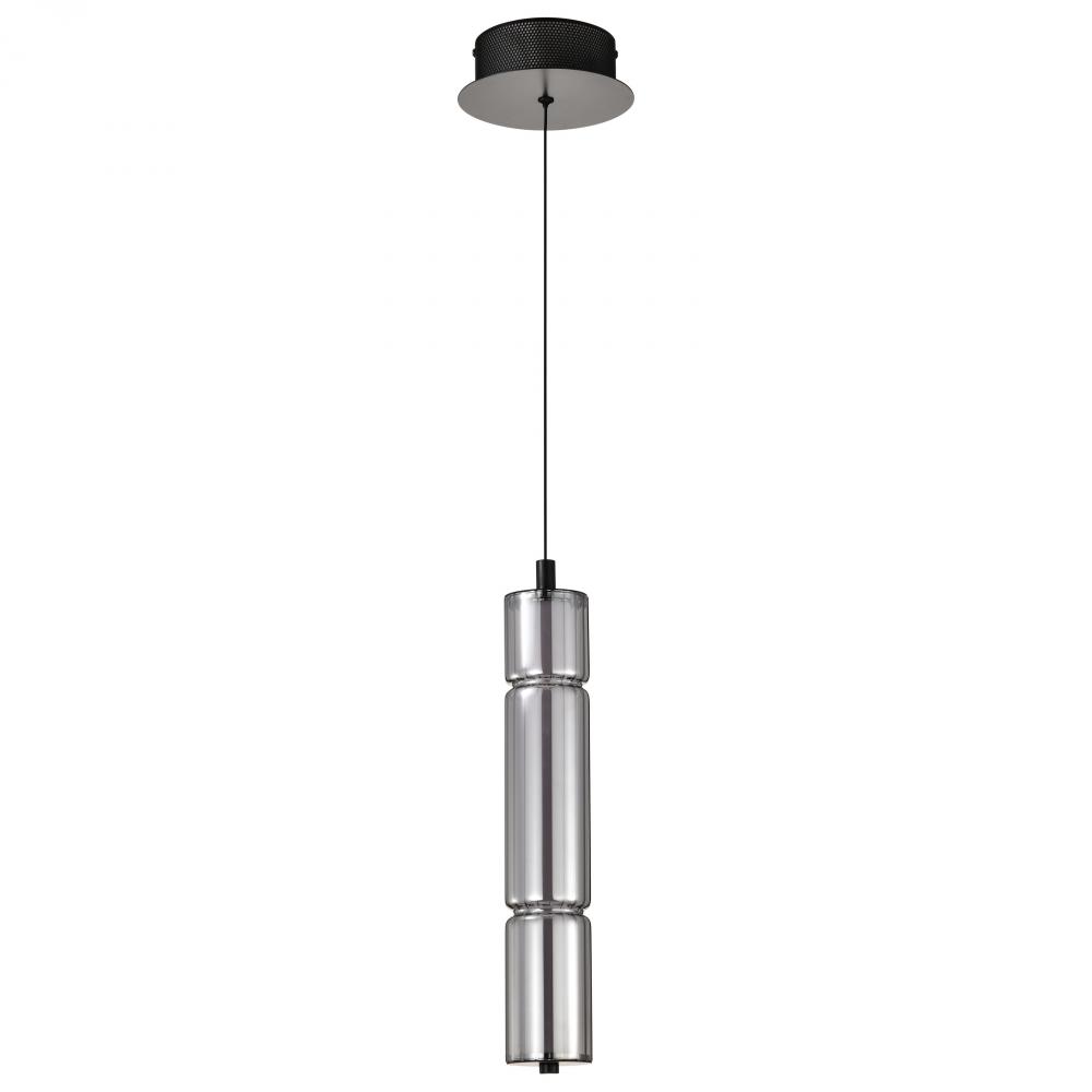 Evander; LED 16 Inch Mini Pendant; Matte Black Finish; Smoked Glass
