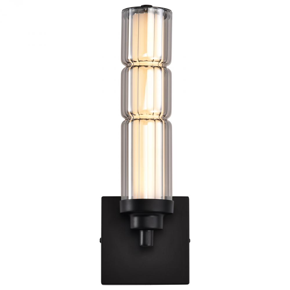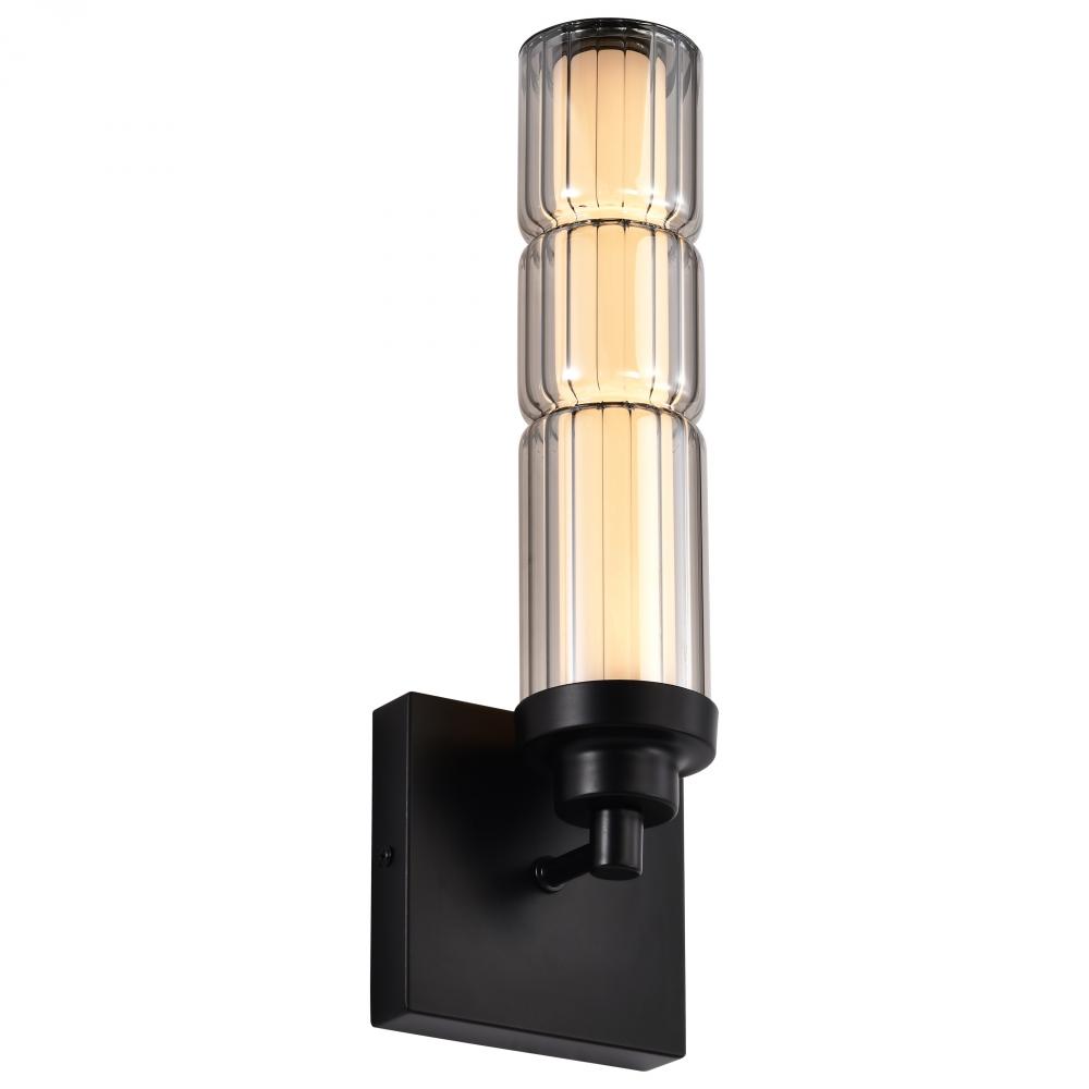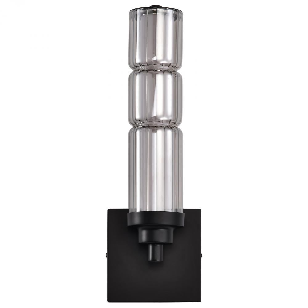 Evander; LED Wall Sconce; Matte Black Finish; Smoked Glass
