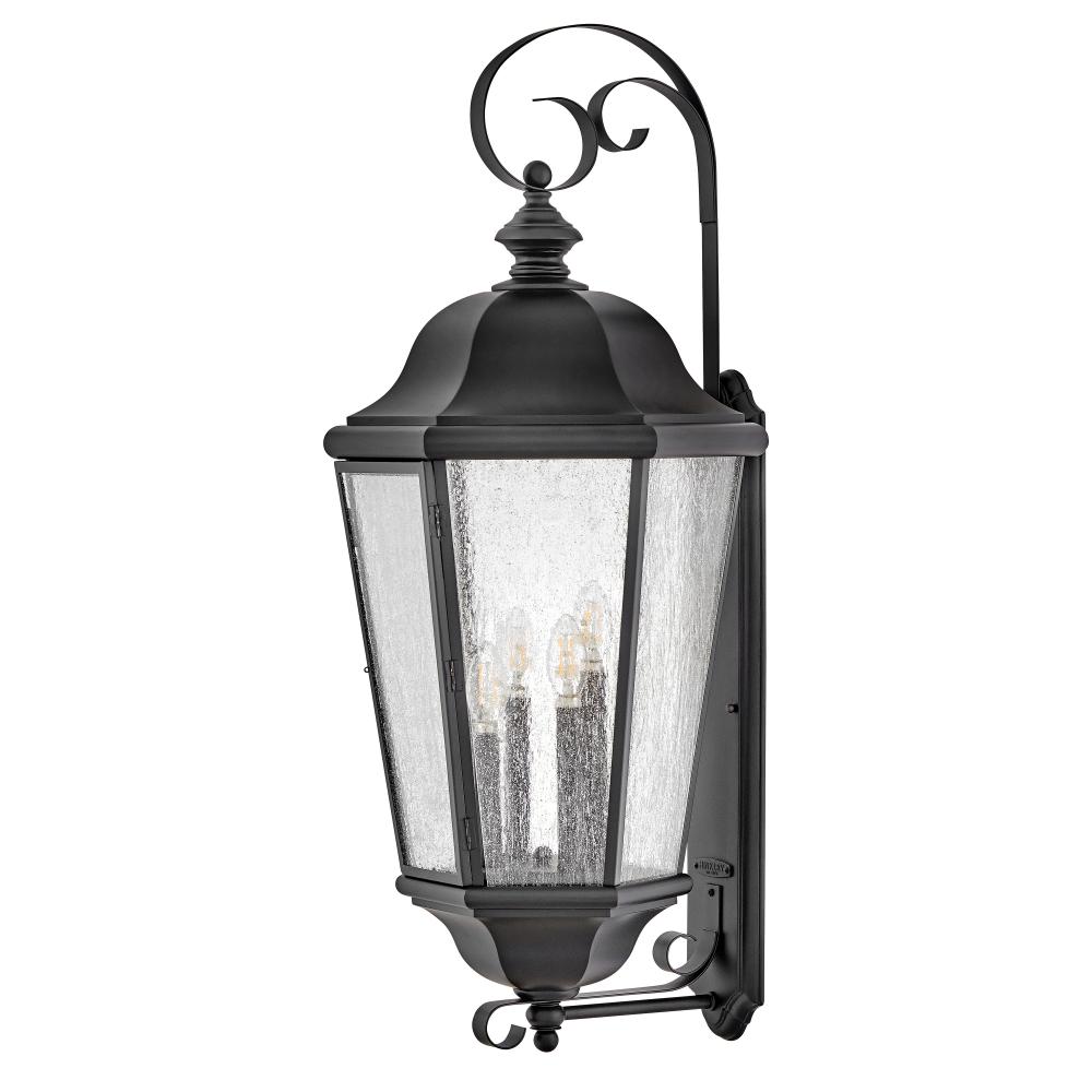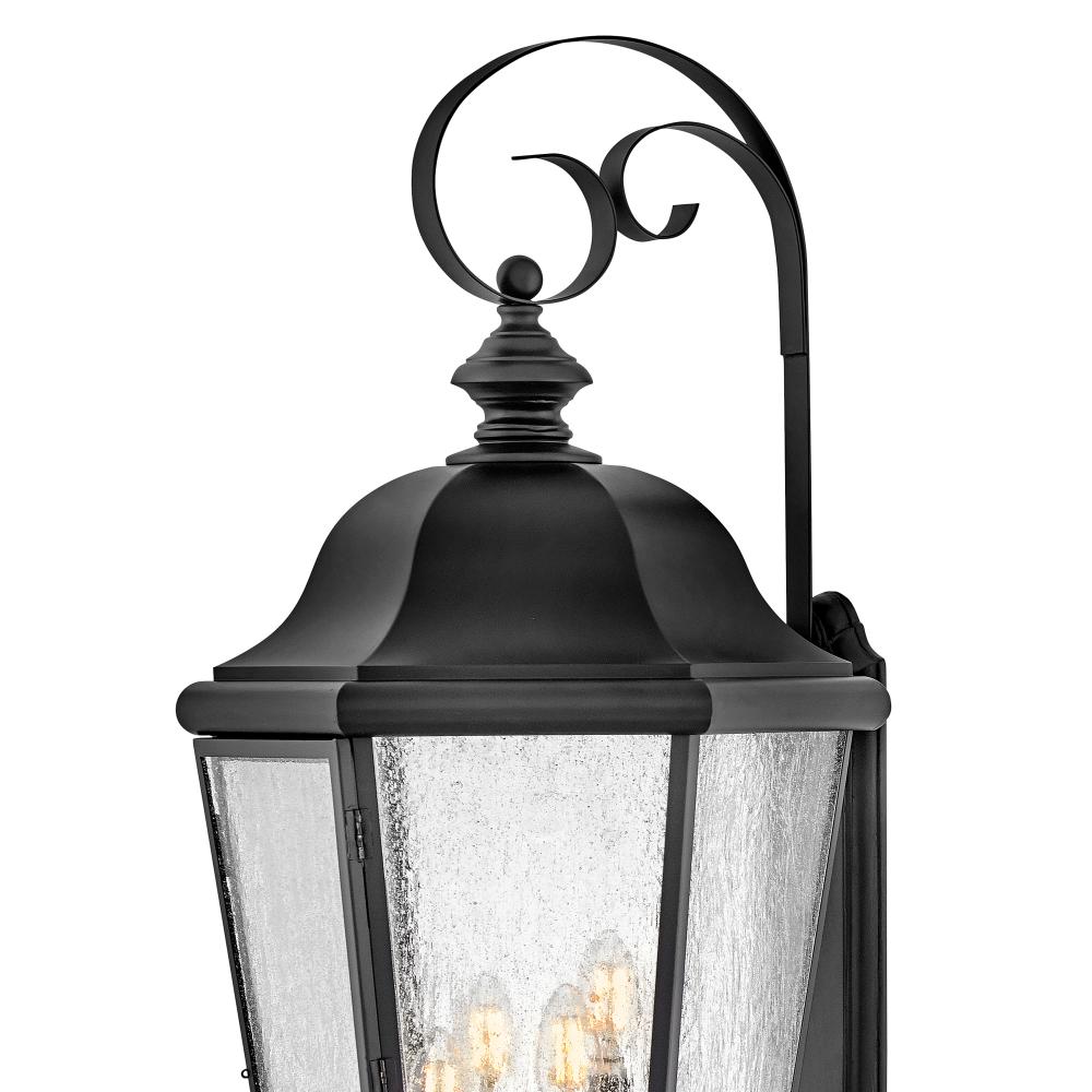 Edgewater's classic design features a durable cast aluminum and brass construction in a rich Black finish with clear seedy glass.