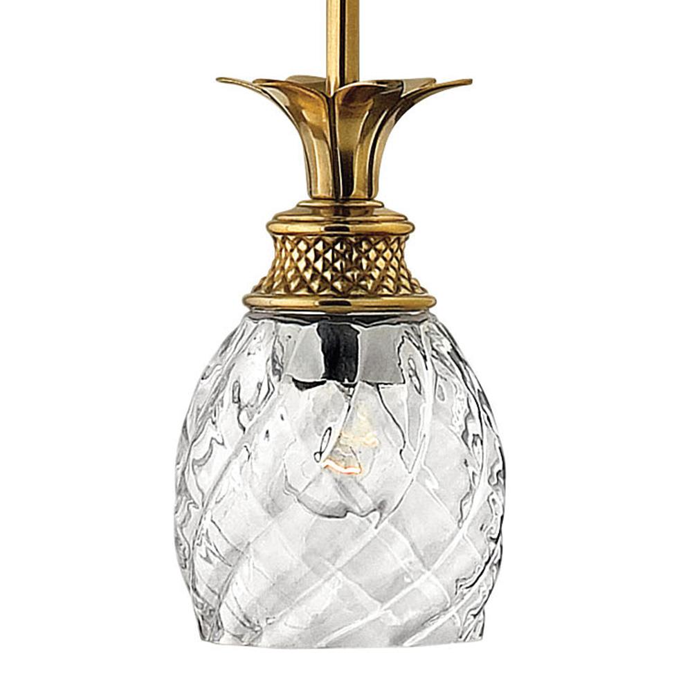 A Hinkley classic, the ornate Plantation collection features exceptional pineapple shaped, clear optic glass that makes a noble statement. The elaborate, decorative cast detailing is accentuated by its lush finish.
