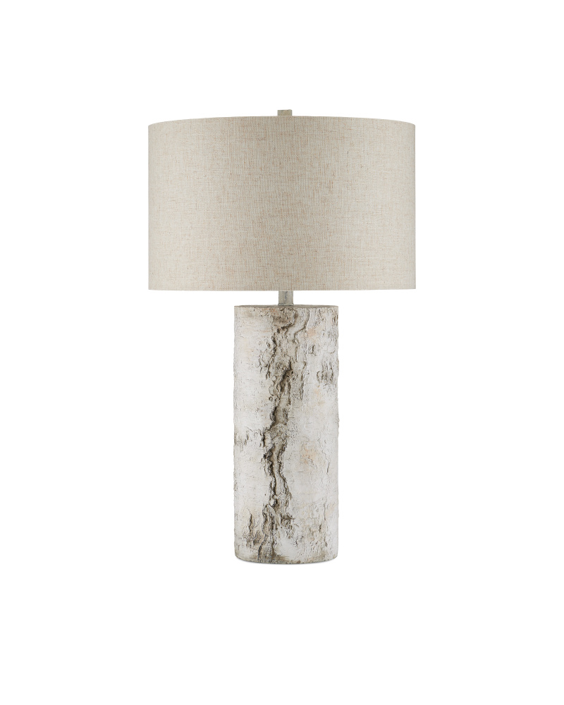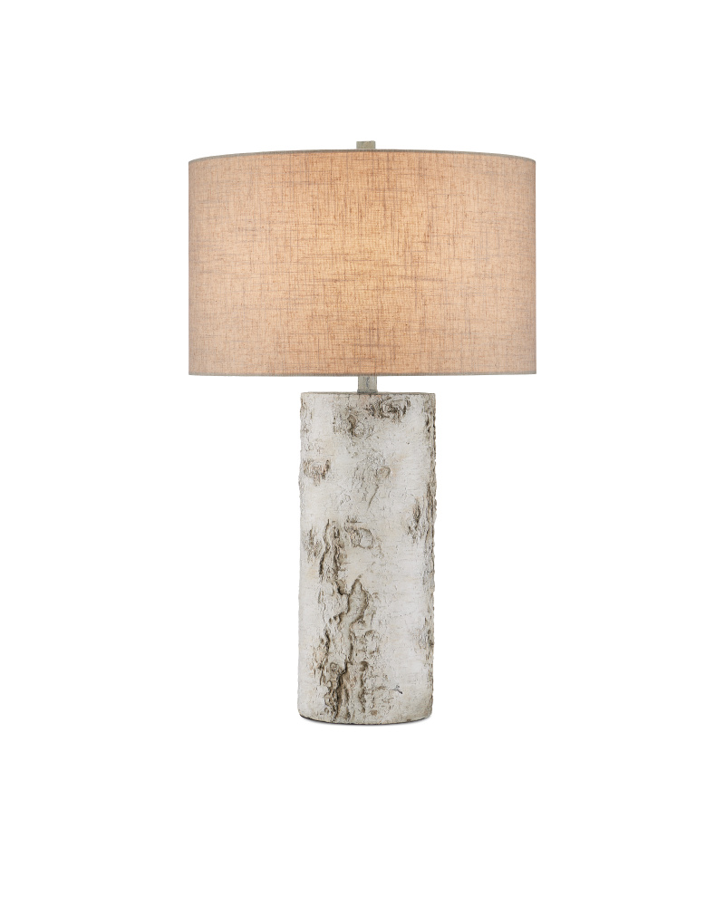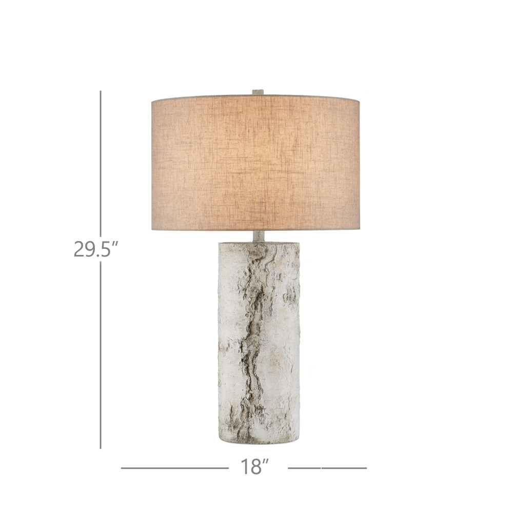 Though the profile of the Faux Birch Table Lamp looks as if it could have been sawed from a tree trunk, it is an artisanal creation made of concrete The illusion of wood comes from the hand-painted finish in a mix of birch white and gray hues, the dark patterning raised as it would be on a real tree.