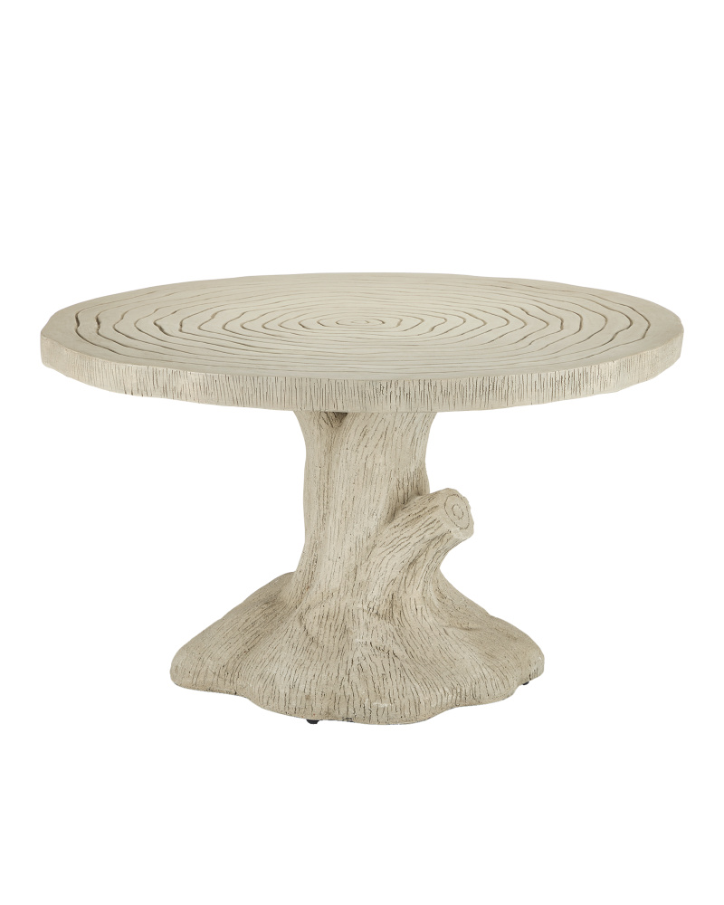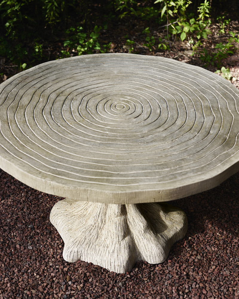 In the time-honored artistry of French faux bois, the base of the Faux Bois Cocktail Table is fashioned to resemble an aged tree that gracefully angles up to its top to convince the eye that nature created it. Durability is built into this faux bois table's DNA. The mix of lighter Portland and dark acid concrete finishes bring this creation ample texture, as do the life rings carved into its top.