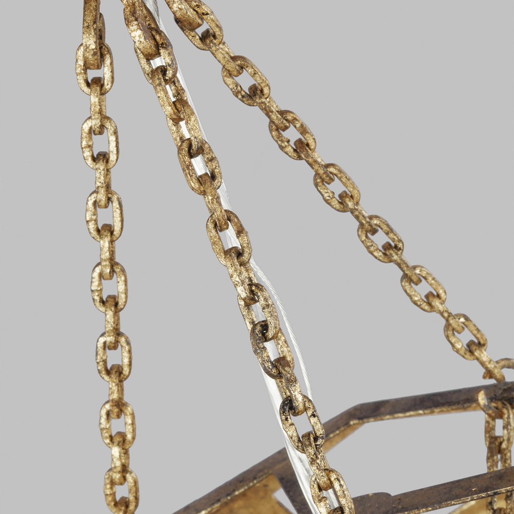 The Alexa Hampton Feccetta one light indoor pendant in antique gild is elegantly charming with a Mid-Century Modern appeal. The fixture is suspended by matching polished brass chain links, and both the shade and socket are held by three smaller chain links. The combination of its circular form with hexagonal shaped cut-out frame, illuminates light from any choice of lamping and can be elegantly placed as the focal point over an island or kitchen table. Alexa Hampton is an industry force who honors tradition and commits to the future, providing smart, stylish, design-rich solutions for every aspect of the home.