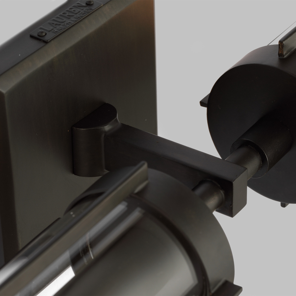 The best of mid-century design features clean, sleek lines and geometric shapes. And that is exactly the classic style the Flynn family from Lauren Ralph Lauren brings to your home. Straight arms hold metal, vertical tubes creating a simple, clean form, all warmed by an Aged Iron, Polished Nickel or Time Worn Brass finish.
