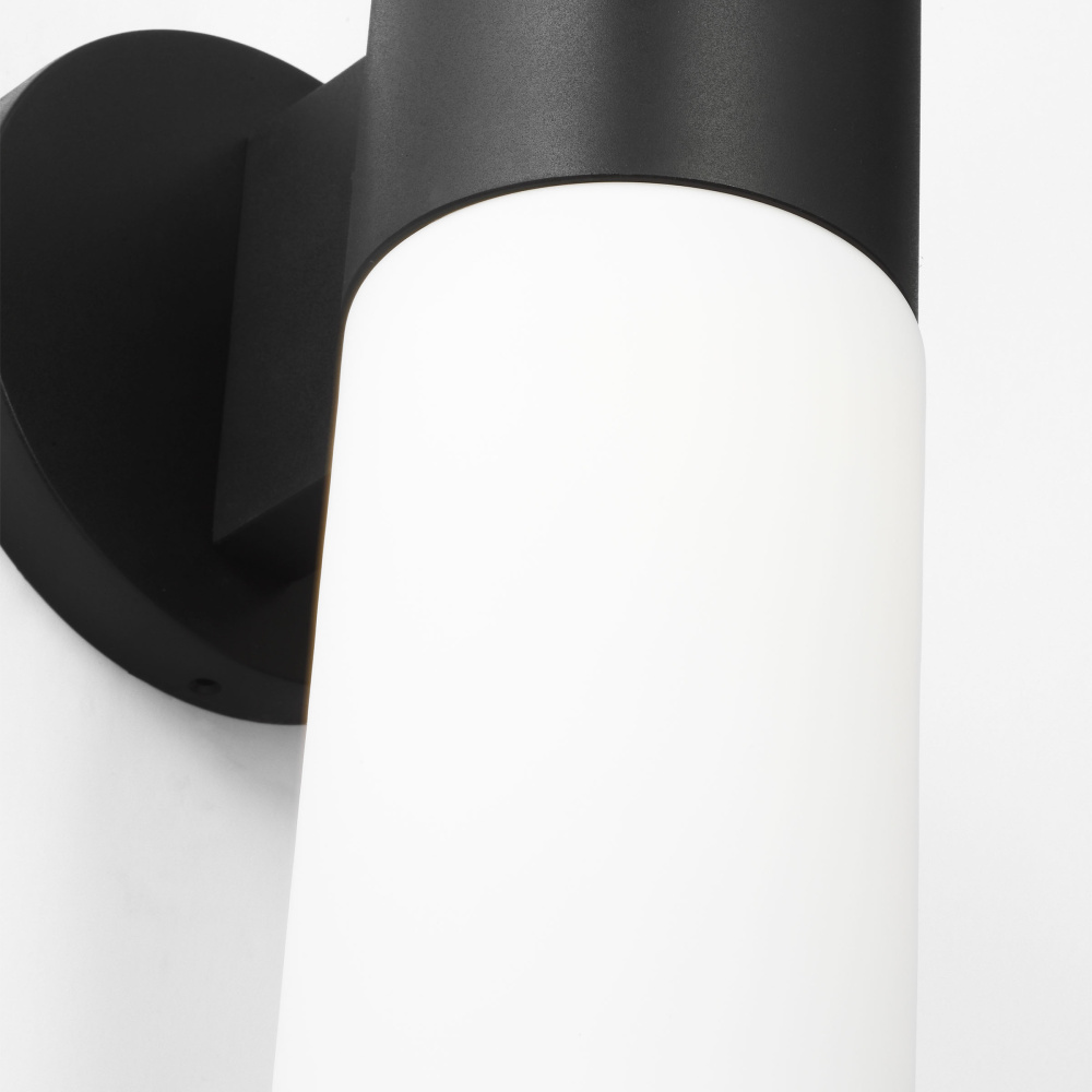 Showcasing bold cylindrical and conical forms, the Focal sconces by Barbara Barry create a discrete yet impactful statement. The textured black finish contrasts elegantly with white glass to create a classic aesthetic that’s as versatile as it is modern. The sconces can be styled as pairs or multiples, flanking doorways and beds, or lining a corridor or stairway.