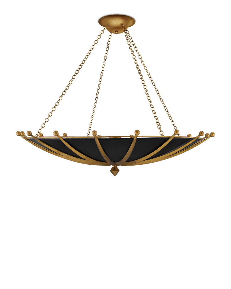 Hollywood starlets of the studio era were expected to lead glamourous lives. How fitting our Fontaine Chandelier would have been for the bevy of beauties who decked themselves out in fur and outfitted their mansions with opulence! The lustrous mix of antique gold leaf, contemporary gold leaf and satin black finishes enhances the sumptuousness of this chandelier, as does the sophistication of its design.