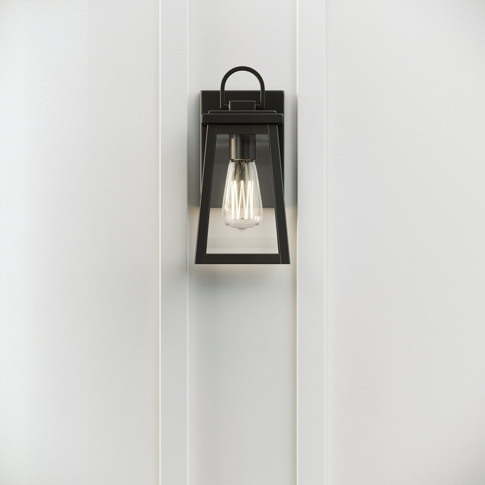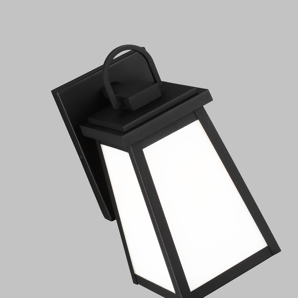 Founders modern 1-light LED outdoor exterior medium wall lantern sconce in black finish with clear g