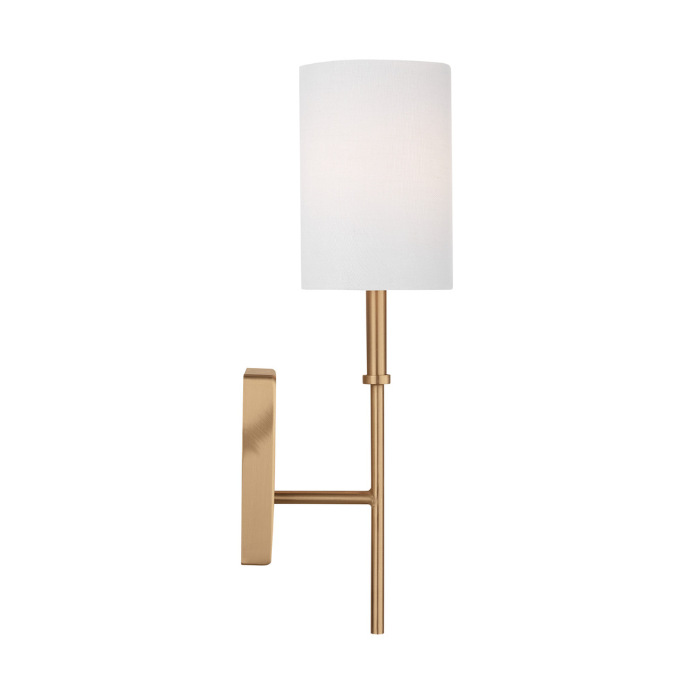 The Foxdale one light wall sconce in Satin Brass encompasses the new traditional style with flawless execution. Refined and clean-lined, this classic silhouette is timeless without being stuffy. Perfectly transitional, this collection can be placed in any home regardless of style. Topped with White Linen Shades to complete the design.