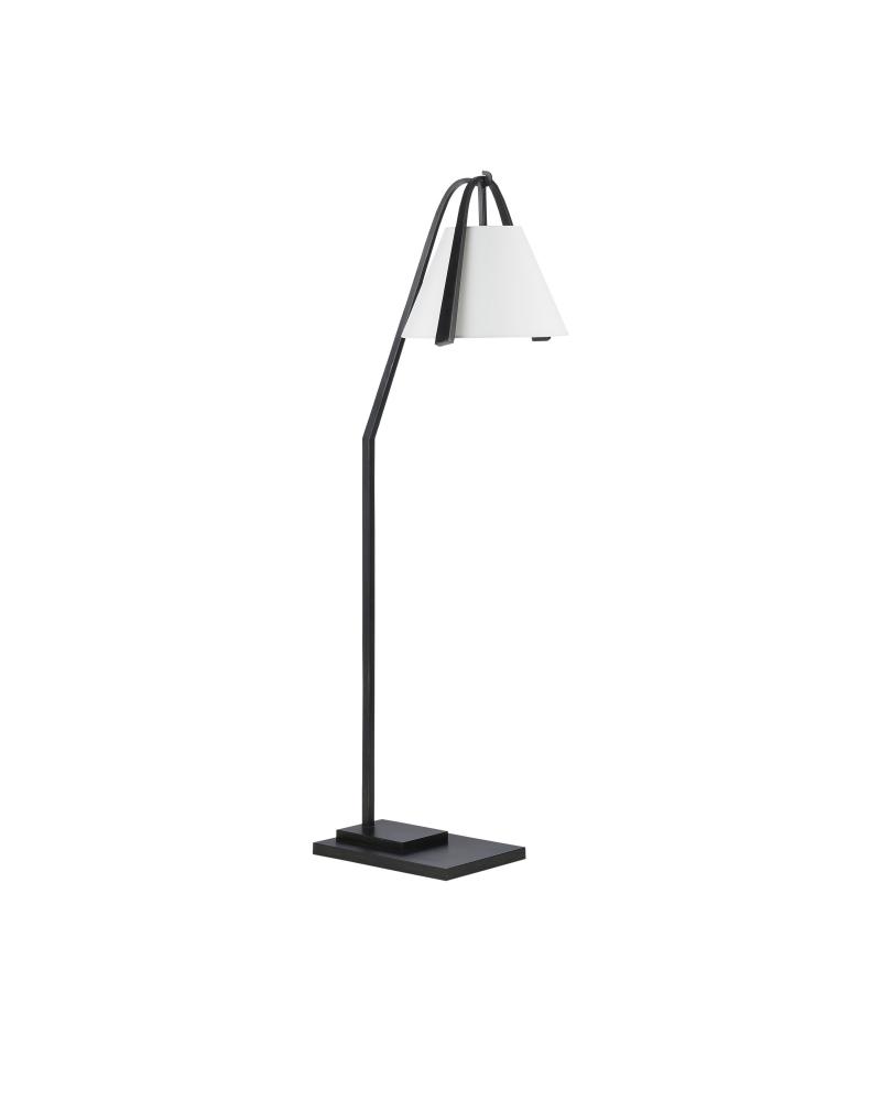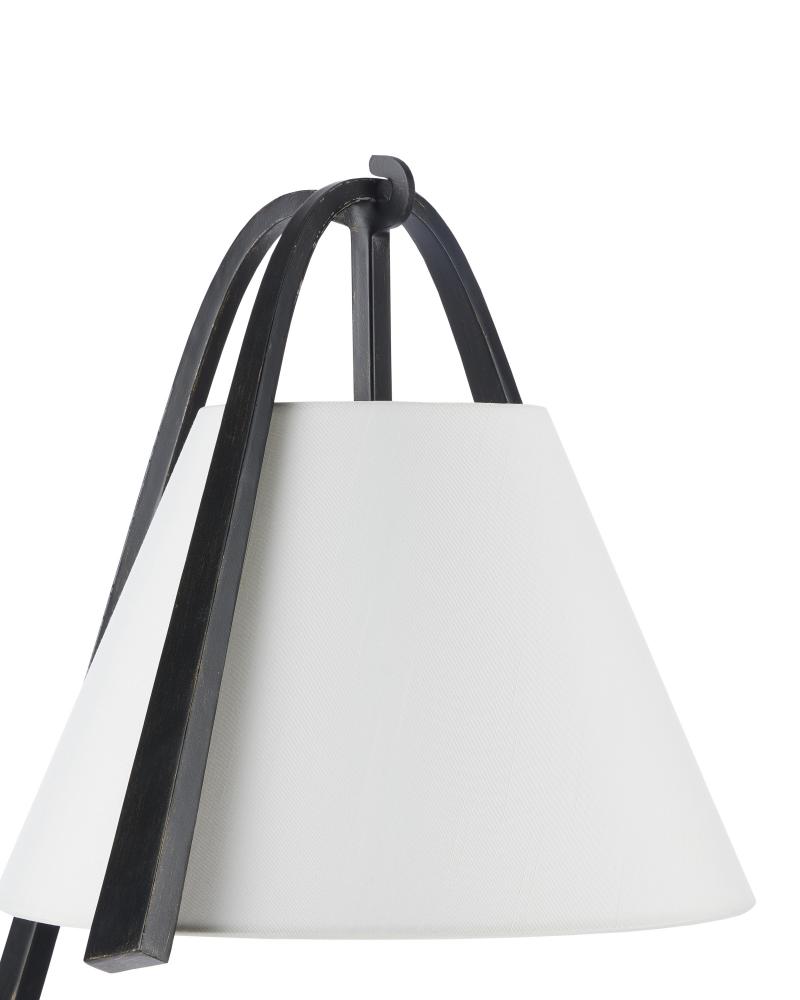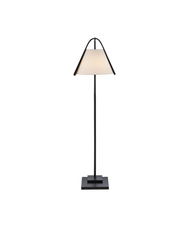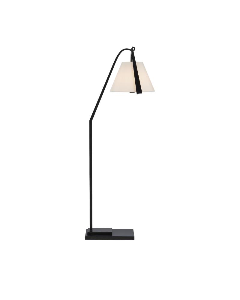 The Frey Floor Lamp brings high style to task lighting with its steel construction in a satin black finish and brushed brown accents. The off-white shantung shade, fitted to the curving arm, adds a refined touch to the design, lending the profile a subtle Asian flair. The stacked base showcases engineered precision while creating a wonderful sense of balance as it extends to the point where the bands holding the shade taper down.