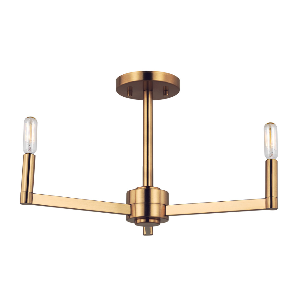 The Fullton three light semi flush fixture in Satin Brass is sleek, contemporary, and uber minimalistic. Visual interest is created using a mix of rectangular and round frames, a subtle design detail. Although this collection is contemporary, it can be mixed in with variety of collections with ease.