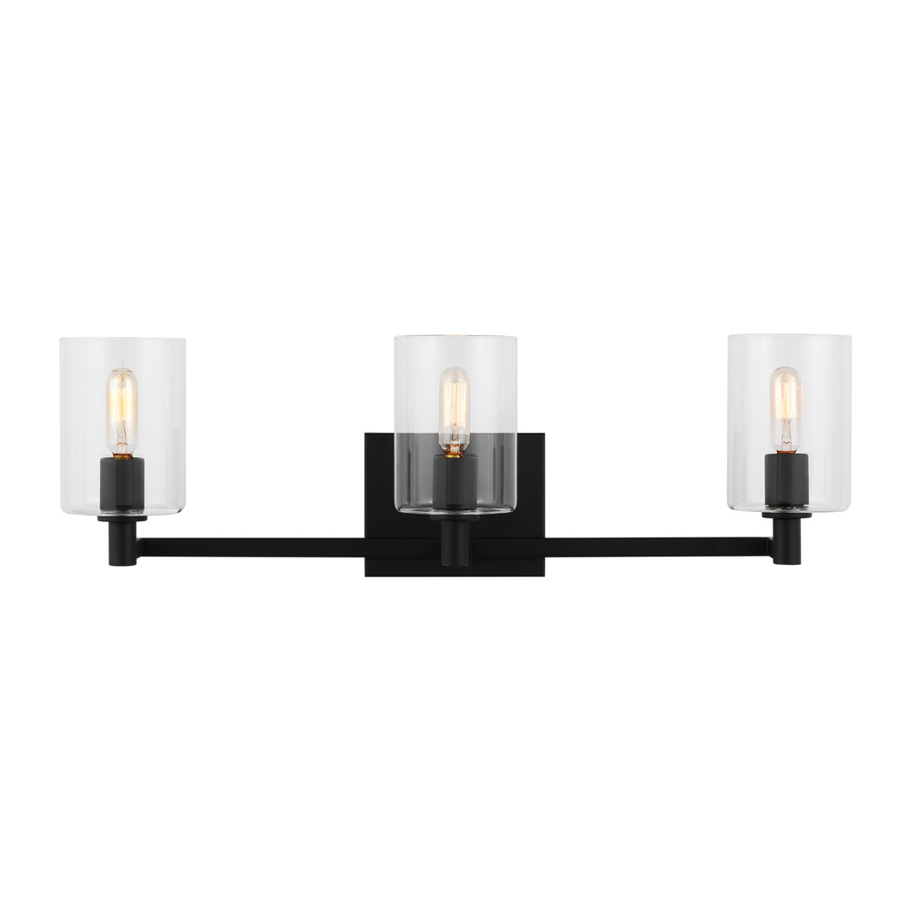 The Fullton three light vanity fixture in Midnight Black is sleek, contemporary, and uber minimalistic. Visual interest is created using a mix of rectangular and round frames, a subtle design detail. Although this collection is contemporary, it can be mixed in with variety of collections with ease.