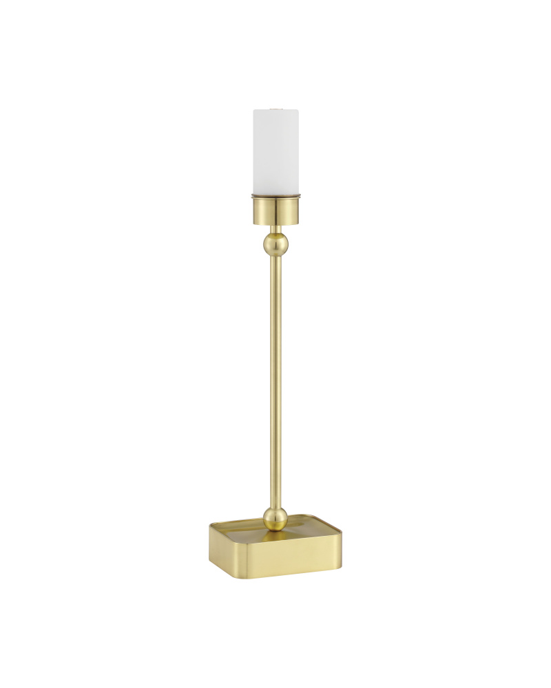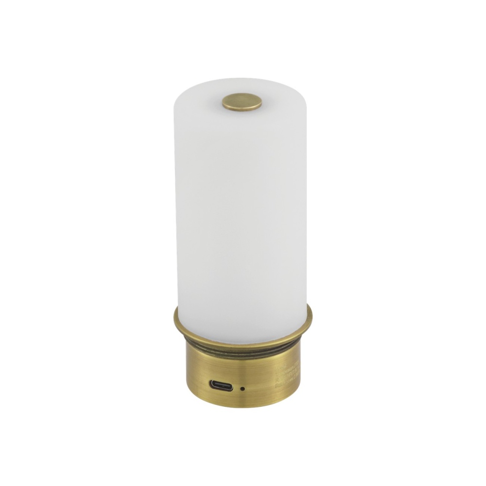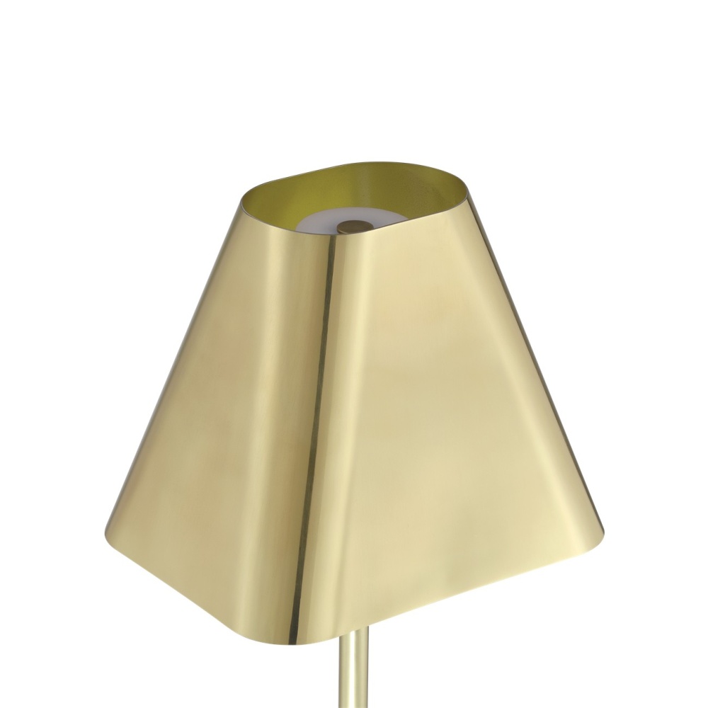 The Gadabout Brass Cordless Table Lamp is a gold lamp that gets around given its freedom to move. The rechargeable bulb sits atop the metal body in a brass finish, and the matching metal shade slides seamlessly over it. The on/off switch is on the top of the bulb, and the shade is finished on the inside for a luxe touch.