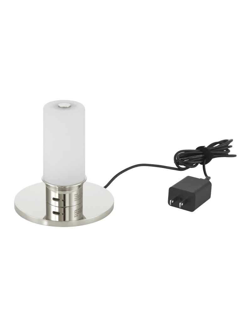 The Gadabout Nickel Cordless Table Lamp is a silver lamp that is easy to move from room to room given it is fitted with a rechargeable bulb. The light source sits atop the thin stem beneath a matching metal shade in a polished nickel finish. The on/off switch is on the top of the bulb and the shade is finished on the inside for a luxe touch.