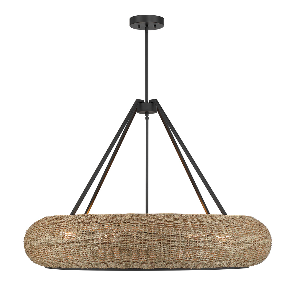 The Savoy House Gaia 6-light chandelier brings an earthy, sculptural beauty to the room, blending designer sophistication with the calming presence of natural materials. Created by award-winning interior designer and TV host Breegan Jane, it honors its namesake - the Greek goddess of the Earth - through intricately woven seagrass shades that offer texture, softness, and organic appeal. The Matte Black finish adds dramatic contrast, giving the fixture a grounded, modern sensibility. Gaia is 40" wide and features an adjustable height ranging from 29" to 83". It uses six standard size bulbs of up to 60 watts each (not included) and includes four 12" downrods and one 6" downrod. This statement piece introduces warmth, movement, and natural artistry to any space.