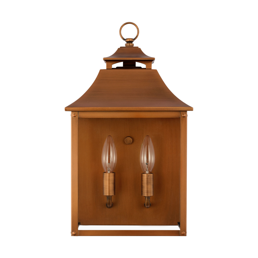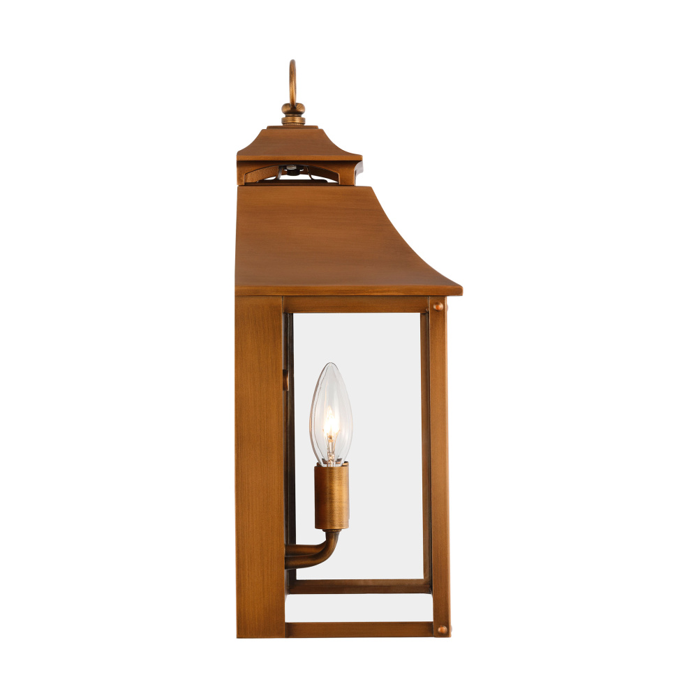 The Galena outdoor series by Sean Lavin is a Europe-inspired classic lantern. Simple and refined, Galena features a gently curved hook detail atop a vented, square-off roofline and candle tubes floating within the tapered Clear glass shades. Galena is a warm, welcoming silhouette offered in a Natural Copper, Sable or Textured Black finish.