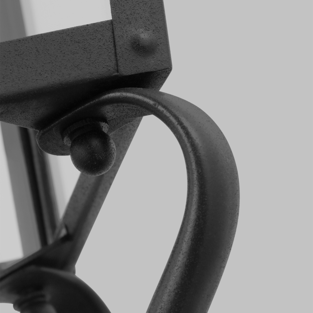 Designed by Sean Lavin, the Galena three-light outdoor post top in textured black enhances the beauty of your property makes your home safer and more secure and increases the number of pleasurable hours you spend outdoors. Galena is a Europe-inspired classic lantern. Simple and refined, Galena features a gently curved hook detail atop a vented, square-off roofline and candle tubes floating within the tapered clear glass shades. Galena is a warm, welcoming silhouette offered in a Sable or Textured Black finish.
