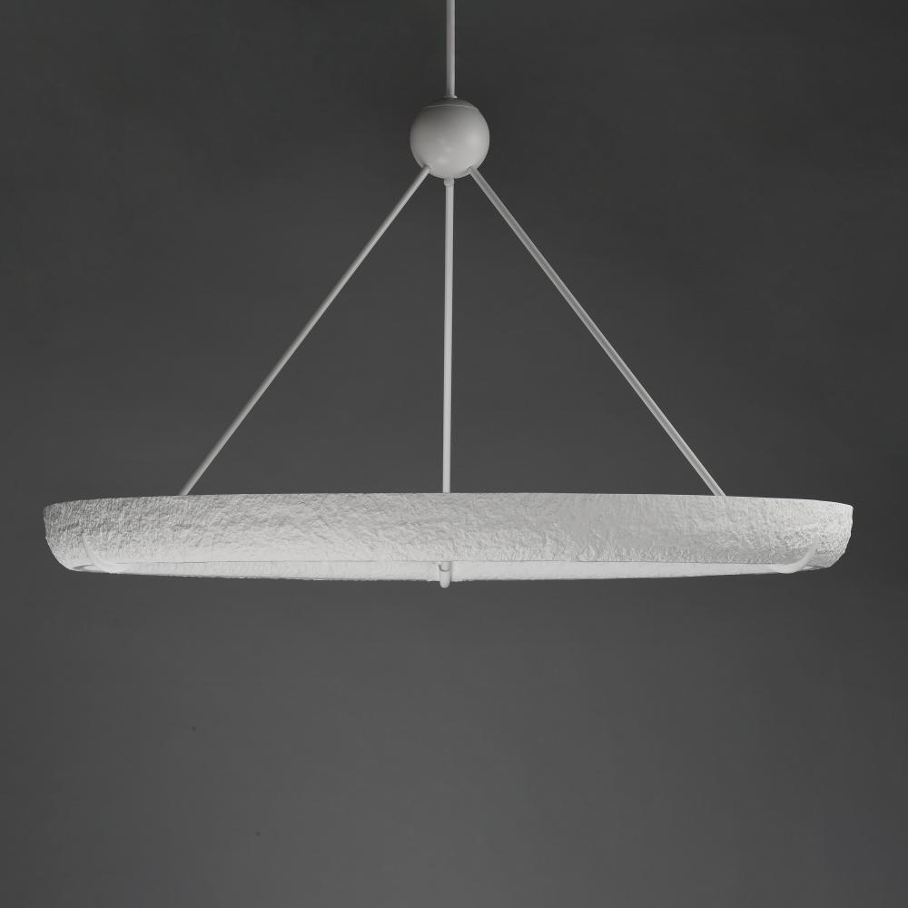 Geist reimagines 20th-century plasterwork in a sculptural ring crafted from artisan plaster. Integrated LEDs provide both uplight and downlight, creating an atmospheric glow. Available in a striking Black plaster finish as well as the classic White, Geist
