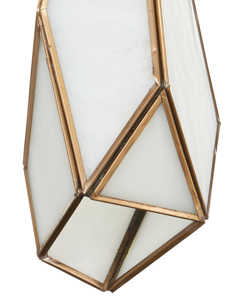 The faceted shades of the Glace White Round 15-Light Multi-Drop Pendant are made of panes of white art glass joined with seams of metal in an antique brass finish. The organic shape of the shades and the fact they hang at differing heights enhance the personality of this white pendant, which will ornament a space like a piece of jewelry. Art glass is one of the most artisanal materials that can be used, as its swirling opaque surface creates a milky glow whether lights are switched on or not. The canopy of this piece is luminous in a painted silver finish. This fixture is among Currey & Company's multi-drop pendant collection, which includes multiple configurations.